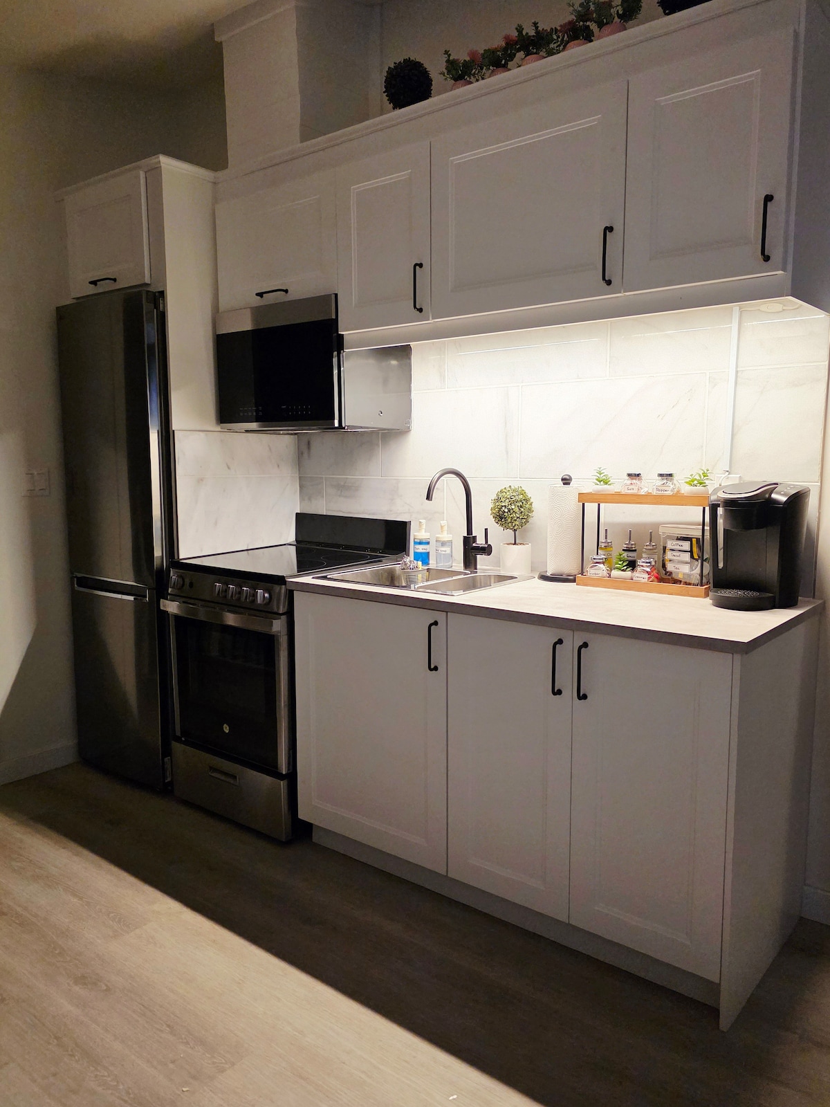 Et donem la benvinguda a la nostra espaiosa suite al soterrani al cor de la ciutat! Disposa d'un dormitori gran amb un llit còmode de mida queen, entrada privada i una còmoda entrada amb teclat numèric. Gaudeix de la cuina petita per preparar àpats lleugers, a més d'una rentadora i una assecadora per a la teva comoditat. Estigues segur amb les càmeres de seguretat exteriors i relaxa't al costat del foc al pati del darrere. Perfecte per a un retir tranquil o un viatge de negocis, amb tot el que necessites a pocs minuts. Comoditat, privacitat i comoditat en un sol lloc!