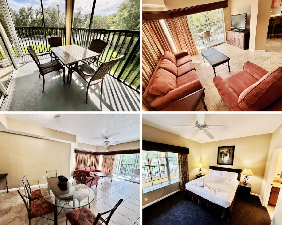 A ✨ 7 minuts de Disney • 4 persones • Piscina, gimnàs, balcó Pis modern d'un dormitori en un complex hoteler a 7 minuts de Disney. Capacitat per a 4 persones amb llit «king size» + sofà llit. A poca distància a peu de botigues i a poca distància en cotxe de tots els parcs principals. Gaudeix d'una cuina completa, wifi, televisors intel·ligents, balcó privat amb focs artificials nocturns, piscina del complex, gimnàs 24/7 i bugaderia a l'allotjament. Perfecte per a famílies, parelles o estades de teletreball.