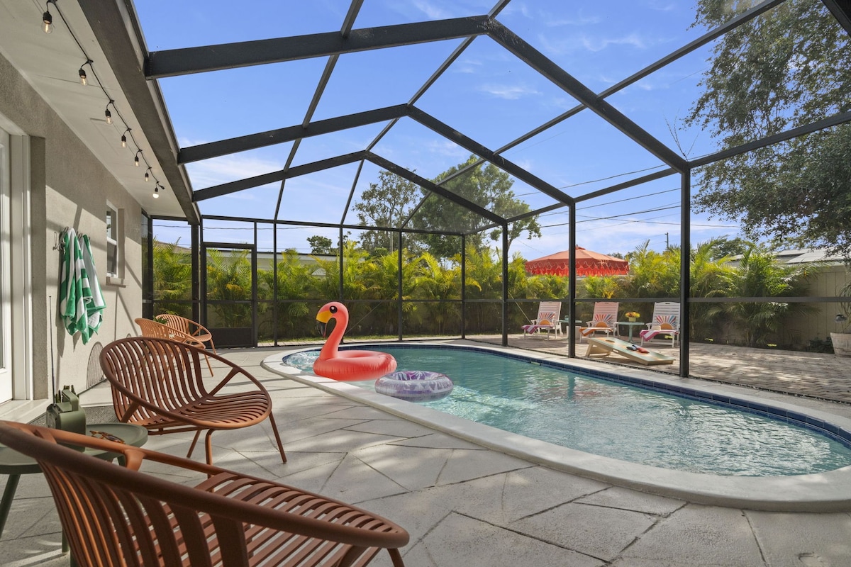 Casa de 3 dormitoris a St. Pete, piscina climatitzada, a 5 minuts de les platges
