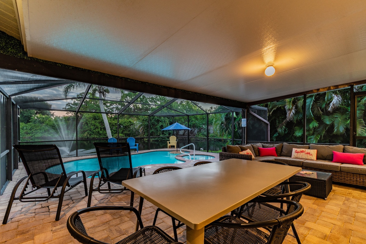 Aquest allotjament recentment renovat com a nou té 4 dormitoris i 3 banys, i té capacitat per a 12 hostes. El disseny interior és espectacular: les fotos no li fan justícia! T'encantarà l'espai d'entreteniment a l'aire lliure i gaudiràs del sol al voltant d'una piscina d'aigua salada amb vistes a un llac ple d'animals salvatges. Situat a 8 minuts de la platja en un barri familiar prop de restaurants i botigues. Neteja professional per a una estada impecable. Piscina climatitzada disponible per un cost addicional.
