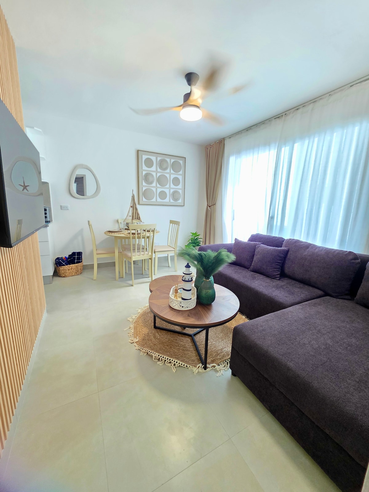 El nostre pis, situat a Bayahíbe, està a menys d'un minut a peu de la platja. Situat dins del complex Cadaqués Caribe, gaudeix d'un ambient completament segur, tranquil·litat per gaudir d'oci, accés a tres piscines, restaurant, cafeteria, supermercat, esports aquàtics (snorkel, caiac) camp de futbol i pista de voleibol. El nostre espai disposa de wifi, cuina, aire condicionat, rentadora, caixa forta, televisor intel·ligent i altres serveis.