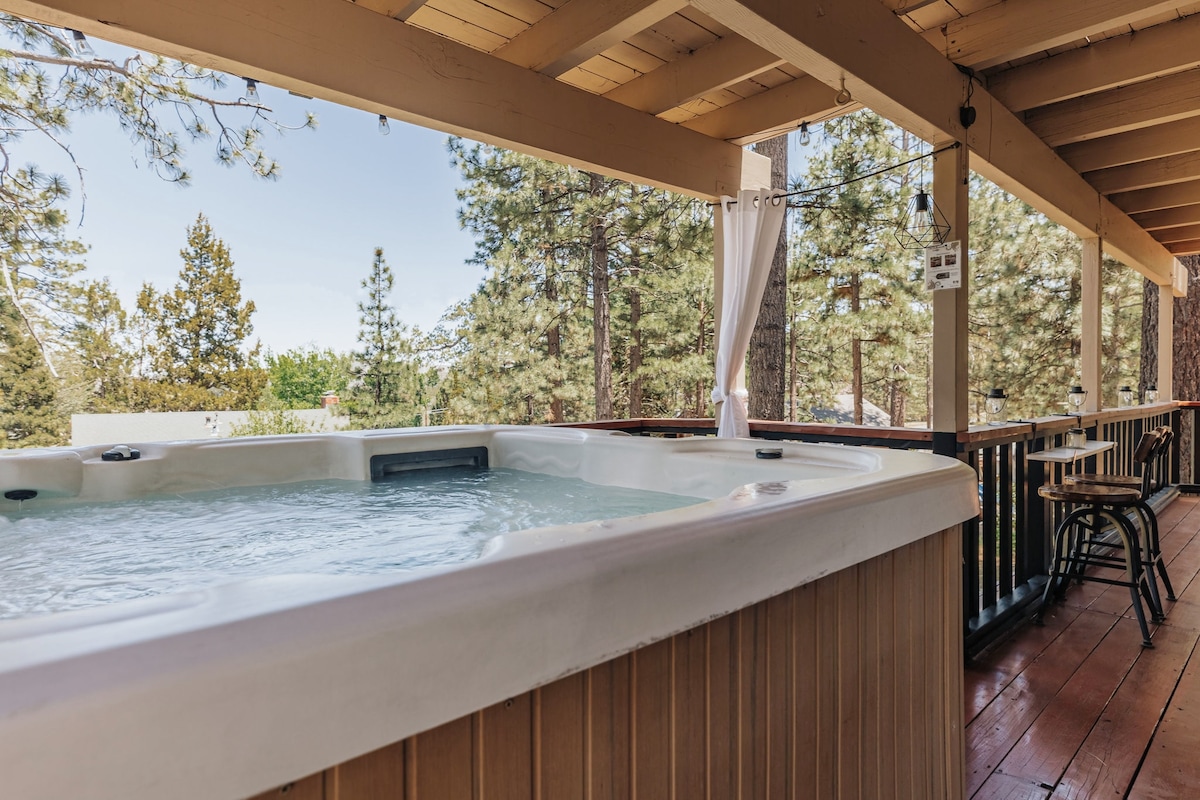 Welcome to Quiet Pine Cabin! Take your Big Bear escape to the next level with this cute Gambrel style cabin, nestled on the edge of the National Forest with direct access to trails and a short drive to the village & lifts. Enjoy the upgraded modern amenities, without losing the cozy cabin charm. The peaceful back deck (equipped with an outdoor living space, firepit, grill, and jacuzzi), looks into the forest, allowing you to unwind and immerse yourself in nature from birdwatching to stargazing.