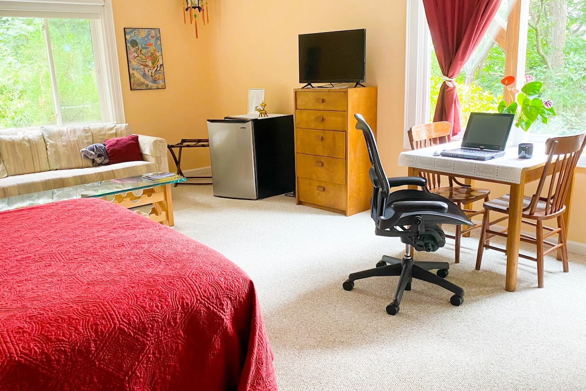 Desperta't amb el cant dels ocells i gaudeix de la posta de sol sobre les muntanyes! Mountain Serendipity és una suite de 2 habitacions de 1000 peus quadrats i un pati privat envoltat de més de 1/2 acre de jardins exuberants amb moltes de les criatures autòctones de Carolina del Nord, incloent-hi 2 esquirols blancs! Ideal per treballar a distància, wifi ràpid a 400 Mbps; cadira d'escriptori Aeron disponible. A 5 minuts en cotxe del centre d'Asheville i dels jardins botànics d'Asheville No s'admeten nens menors de 8 anys i només si es comporten bé. L'espai no és segur per a nens!
