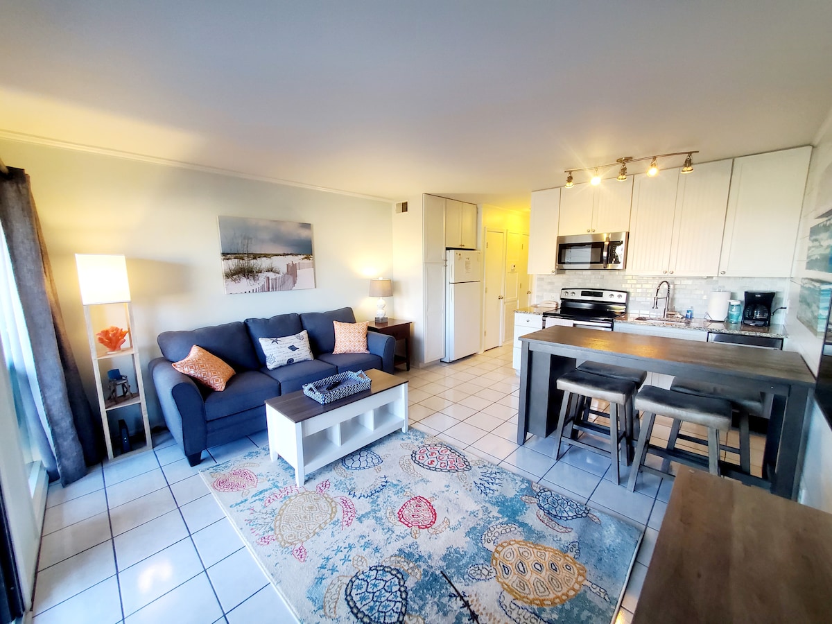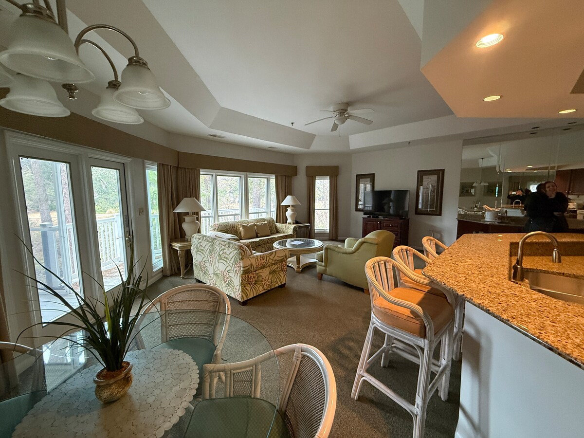 Aquesta vil·la recentment renovada al hotel privat/tancat Hilton Head Beach and Tennis Resort està decorada amb una bella vista de segona planta de l'oceà, la piscina més gran de l'illa i les precioses maresmes i roures vives, des del balcó. L'apartament és una de les unitats més properes a la piscina davant de l'oceà i al bar/restaurant i a l'accés a la platja, cosa que el converteix en una de les millors ubicacions de l'enorme complex.