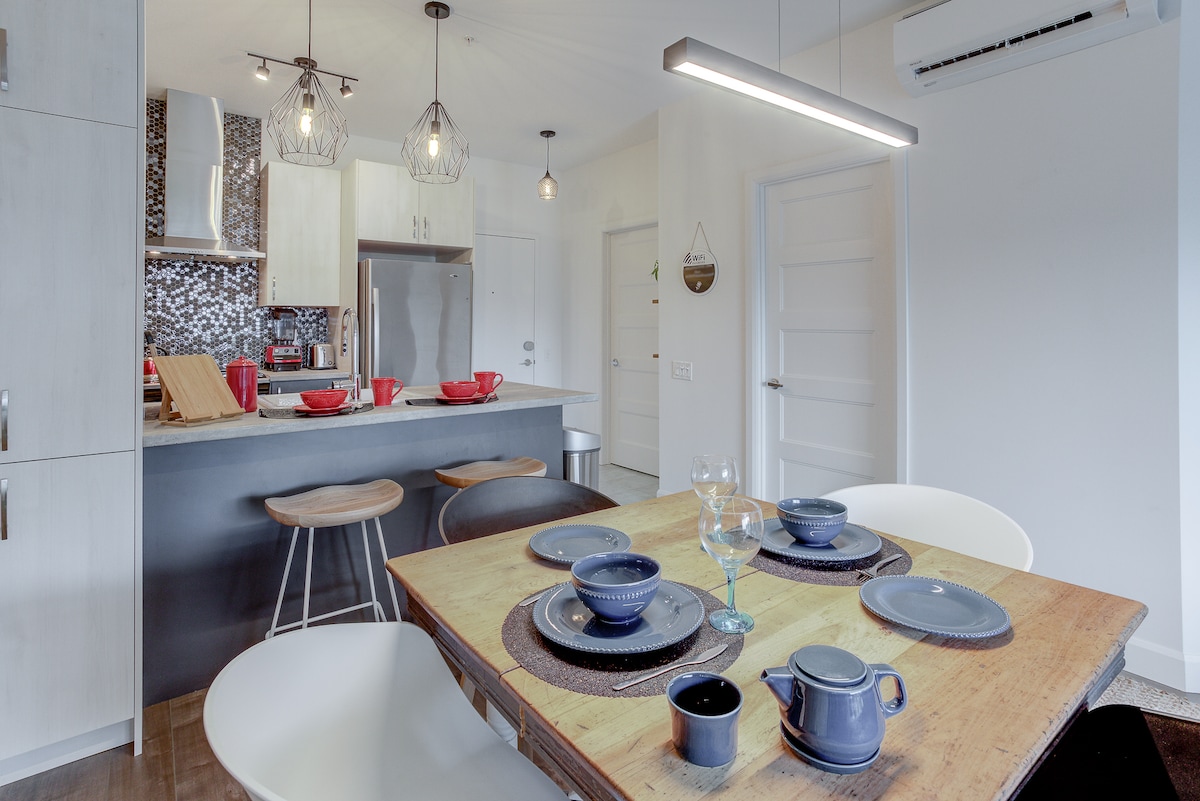 The 1106 is the novelty of the St-Roch district which is in full effervescence. In addition to the indoor gym, a heated swimming pool** is located on the roof surrounded by a magnificent terrace with a view of Old Quebec. The 1106 is a comfortable condo with King bed and Queen sofa bed in a fresh and cared decor. Everything is there for a perfect stay: air conditioning, washer/dryer, dishwasher, sheets and towels are also at your disposal. The ideal location for visiting Quebec!