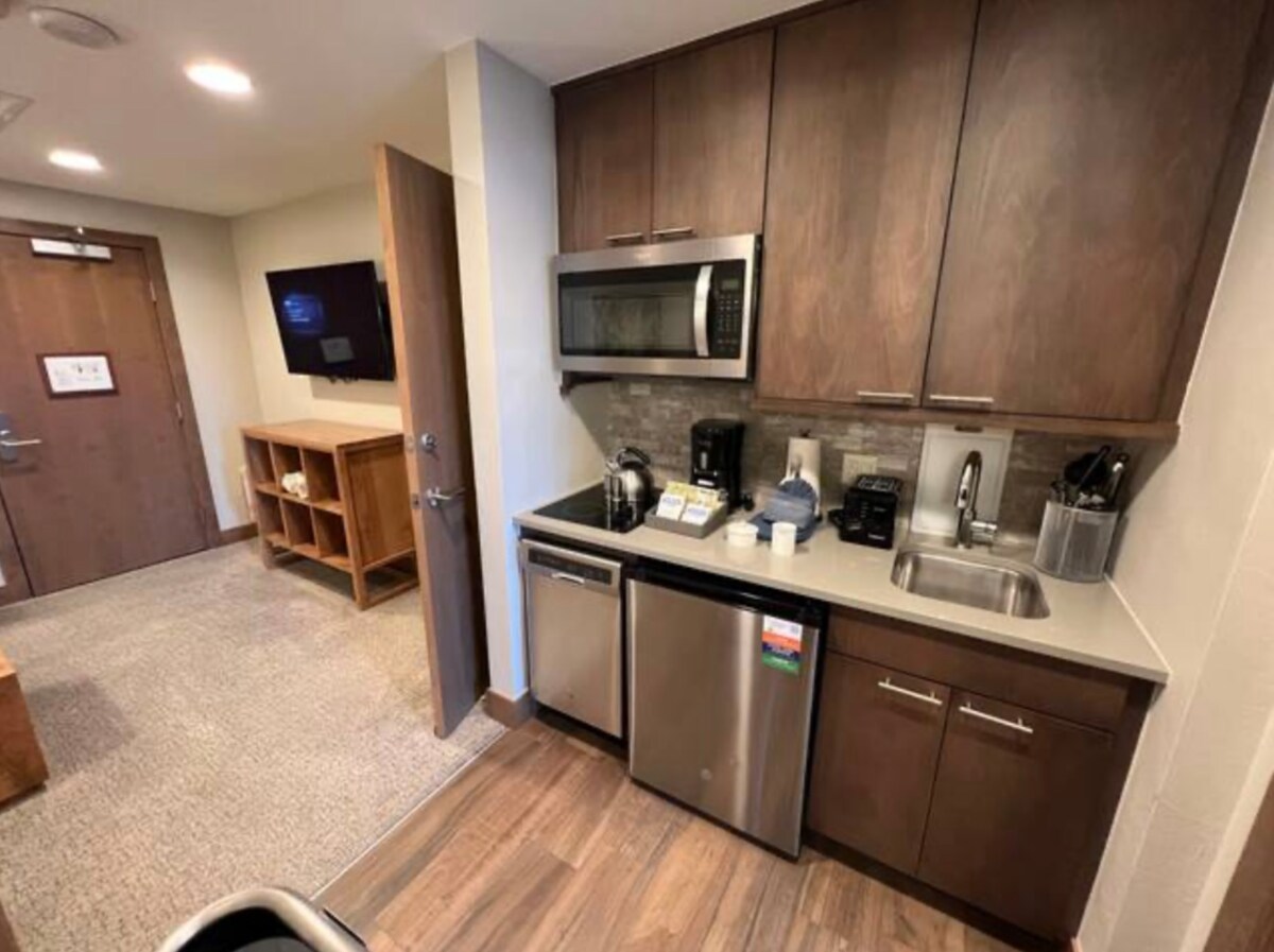 Ski in Ski out on peak 8!!! Aquest és un apartament d'1 dormitori i 1,5 banys que inclou una cuina i capacitat per a 4 persones. Arribaràs a la recepció del complex hoteler i tindràs accés complet a tots els serveis de la propietat. Més informació sobre la propietat, accedeix al gran colorado al lloc web de Peak 8. Aquesta suite d'un dormitori té un dormitori amb bany privat amb una sala d'estar independent amb una zona de menjador i cuina completa. La sala d'estar té un sofà llit.