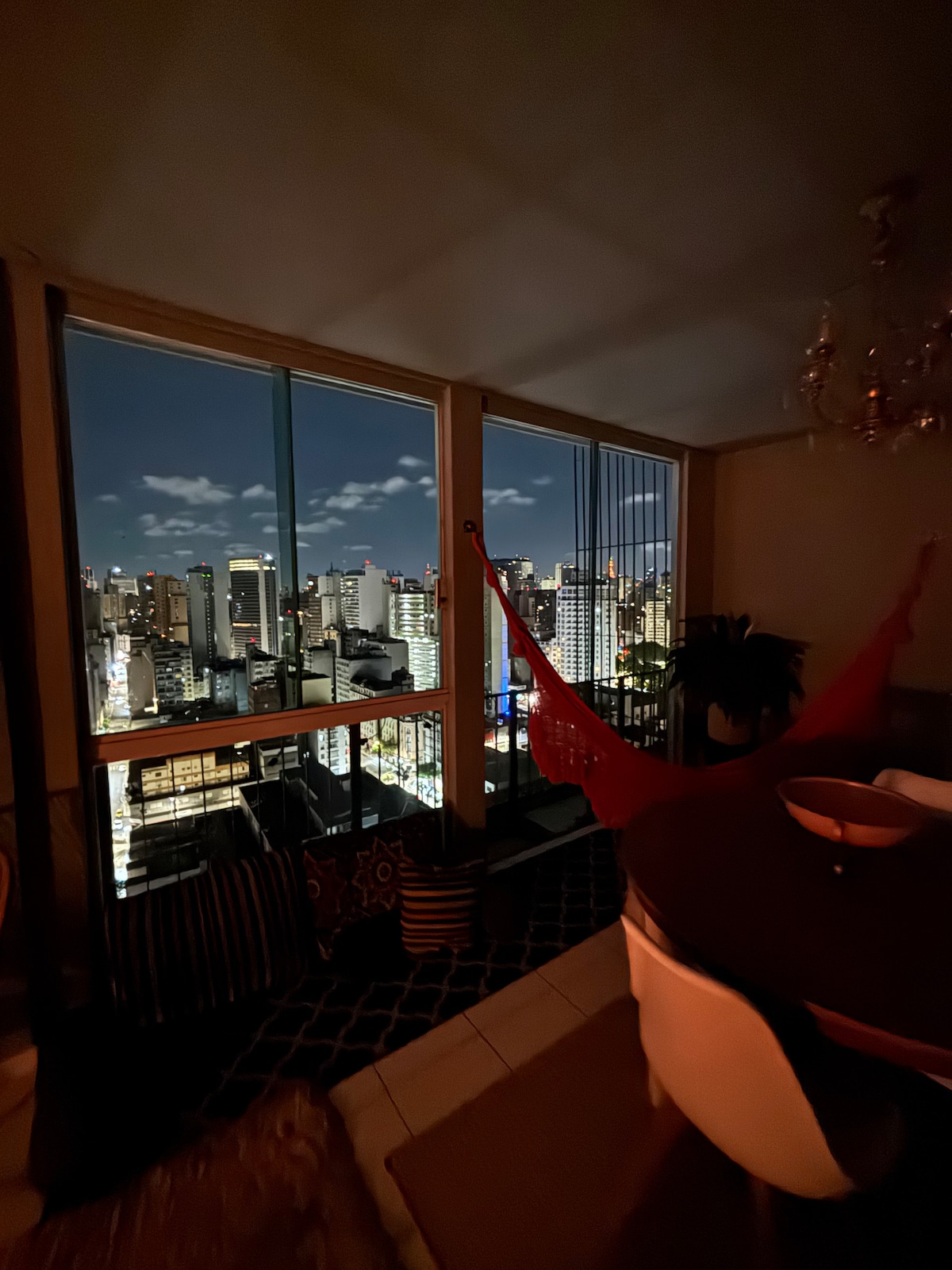L'estudi està situat a la planta 31 de l'edifici més alt del centre, amb un disseny modern i acollidor, així com una vista impressionant de la ciutat. Des de la finestra, es pot admirar la vall d'Anhangabaú, el centre històric, les antenes de l'Av. Paulista: un dels paisatges més bonics de São Paulo. És l'edifici on es troba SampaSky i es pot caminar fins als principals llocs d'interès del centre. Disposa d'aire condicionat, televisor de 55"amb aplicacions, cuina equipada amb estris bàsics, cuina (1 boca), microones i minibar.