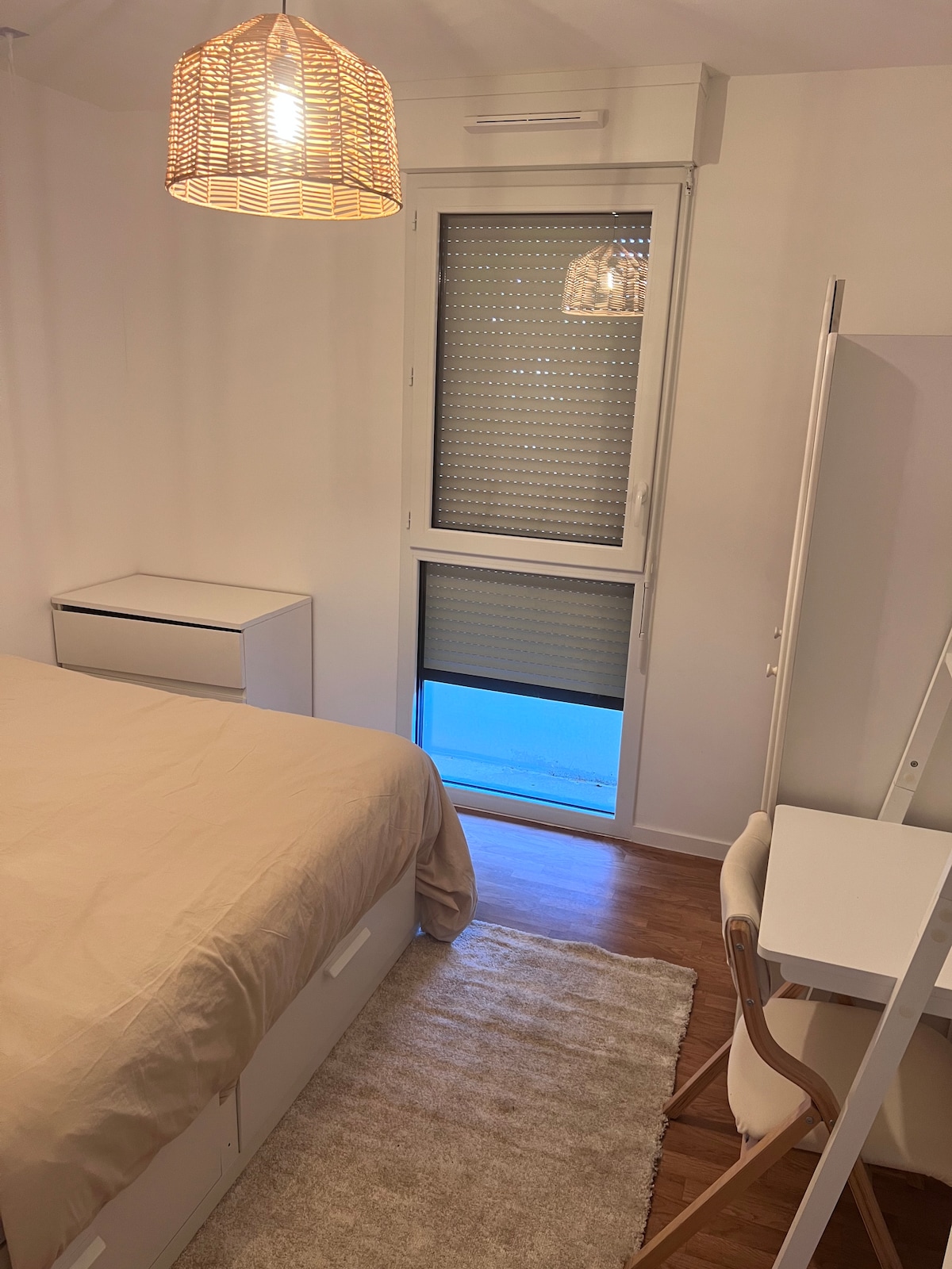 Découvrez la suite californienne, ce logement de plain-pied, baigné de lumière, propose une chambre avec un lit queen size, un salon, une salle d'eau et un dressing (29 m2) - attention pas de kitchenette. Cet hébergement sera idéal pour vous accueillir confortablement lors de votre séjour. C’est un havre de paix dans un quartier calme à quelques minutes des principales infrastructures de la métropole nantaise (Zénith, aéroport, polyclinique, Centre Atlantis...).