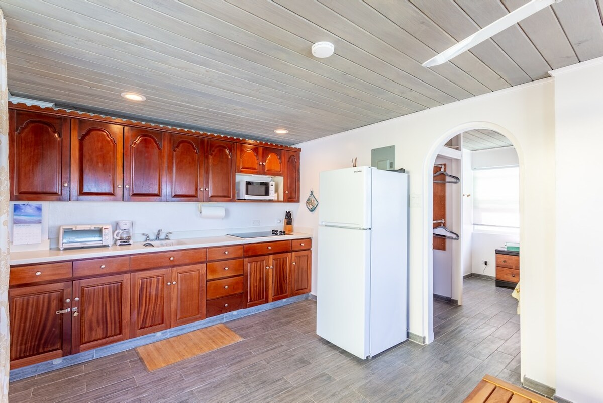 "Ubicació, ubicació, ubicació!" Aquest estudi rústic però encantador per a convidats es troba en un turó sobre un dels complexos turístics més sol·licitats i bonics de les Illes Verges. A només dos minuts a peu de Long Bay Beach and Resort, que ofereix un increïble spa, un bar de platja i un restaurant. Aquest estudi per a convidats és perfecte per a una parella o una família de tres persones. Els amfitrions han viscut a les illes durant 30 anys i els encanta compartir informació sobre la zona.