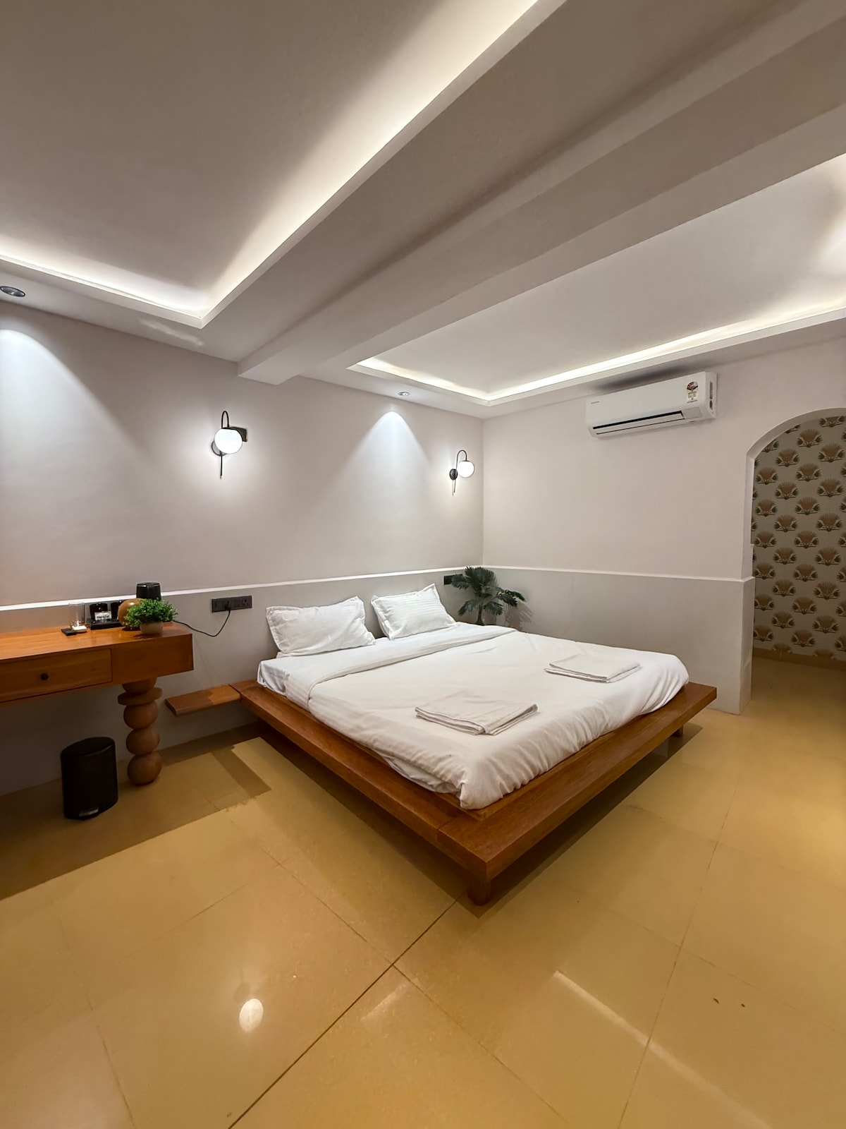 El nostre apartament de luxe de 2 dormitoris amb aire condicionat pot allotjar amb comoditat fins a 4 hostes. Té una cuina totalment equipada, molta aigua calenta/freda i 2 banys complets. Situat en un poble serè amb un punt d'observació d'ocells que és a la volta de la cantonada, una bonica platja de 10 a 15 minuts a peu dist. també es troba a prop, bons restaurants i un mini mart. L'aeroport internacional, les estacions d'autobusos i tren a prop fan que el nostre lloc sigui perfecte per relaxar-se i gaudir d'una estada a Goa.