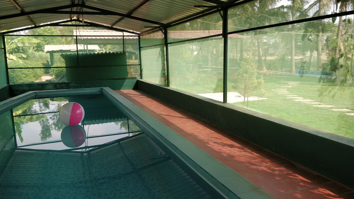 Es tracta d'una masia preciosa al sud de Bangalore, al costat de Kanakpura Road, a uns 25 km del centre de la ciutat. Situat entre granges, ofereix un refugi verd als habitants cansats de la ciutat que volen escapar de la bulliciosa vida urbana. La casa en sí té totes les comoditats modernes, però està envoltada d'un hort de fruites, hortalisses i una increïble col·lecció dels millors cavalls, vaques, etc. Desperta't amb el cant dels ocells, els galls de les vaques i els veïns dels cavalls. Rejuveneix. Relaxa't. Refresca