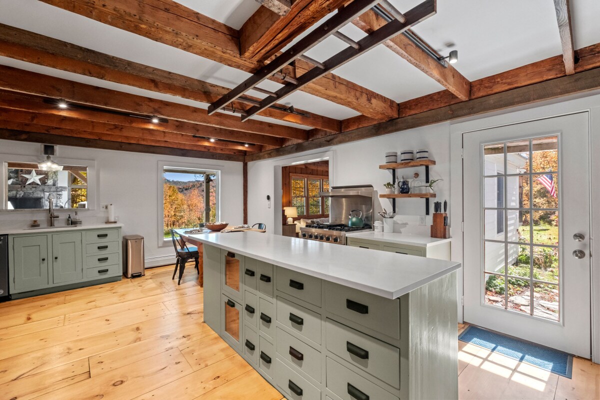 A 7 minuts en cotxe de pickleball, tennis, piscina, golf, ciclisme de muntanya i esquí a Stratton Resort. Gaudeix de 5 hectàrees de vistes arbòries des del teu xalet privat. Lluminós amb orientació sud. Terrassa i foguera per observar les estrelles, mobles moderns de mitjan segle, electrodomèstics nous i wifi de 300 Mbps i un mini split AC/Heat. Pràctic per a zones d'esquí, restaurants, botigues i piscines naturals, però aïllat i tranquil. Camina fins a Pikes Falls 29 minuts a Bromley i Mt Snow Cal un vehicle amb tracció a les quatre rodes per a la primavera i l'hivern. Tarifa per a mascotes: 187 $.