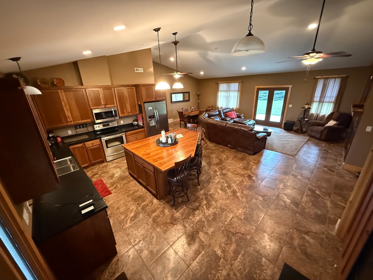 3 dormitoris, 2 banys complets. Garatge de 42’x20’, cabrà en un vaixell i camió o 2 vehicles (un darrere de l'altre). També hi ha molt d'espai per aparcar a l'aire lliure. Cuina nova amb taulells de carnisseria. Pati gran, llar de foc, lloc de trobada al garatge. Al garatge hi ha un taulell gran per netejar el peix i la caça. Hem dedicat molt d'amor a aquesta casa, esperem que la gaudeixis i la teva estada. Si tens cap pregunta, fes-nos-ho saber. L'accés al port esportiu i al llac és a només 1 milla.