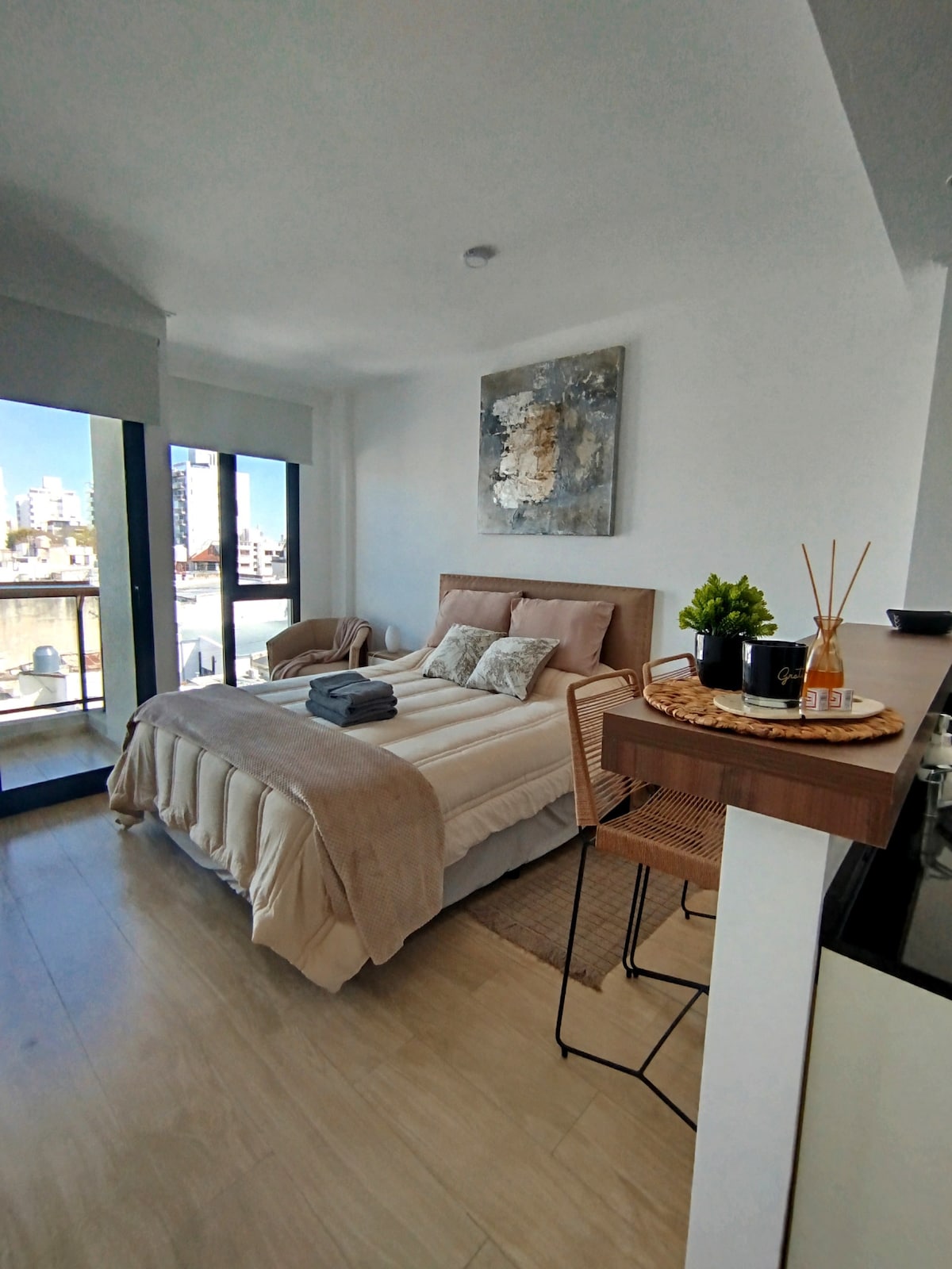 Depto a estrenar en el piso 13 situado en zona estrategica de la Ciudad de la Plata, sobre Plaza Italia y con vista a Plaza Moreno. El mismo es moderno y cómodo para una familia. El mismo cuenta con aire frío calor, wifi, TV, lavadero, balcón y 1 habitacion (la habitación posee una cama king size linea hotelera) en el living se encuentra un sofá cama de 2 plazas (medidas 1.90x1.10). En planta baja tendrán acceso a un kiosco 24 hs. que estamos seguros simplificará su estadía.