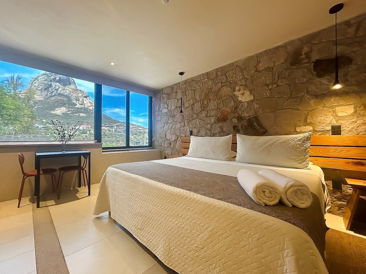 Relaxa't en aquesta suite tranquil·la i elegant amb accés a tota la casa perquè puguis gaudir de la privacitat, la comoditat, el disseny i una vista única de la Peña de Bernal en un sol espai. Situada en un turó exclusiu, dins d'un turó privat es troba Villa Casa Loma que ara hem triat per obrir les seves portes per a parelles que busquen gaudir dels serveis immillorables d'una casa.