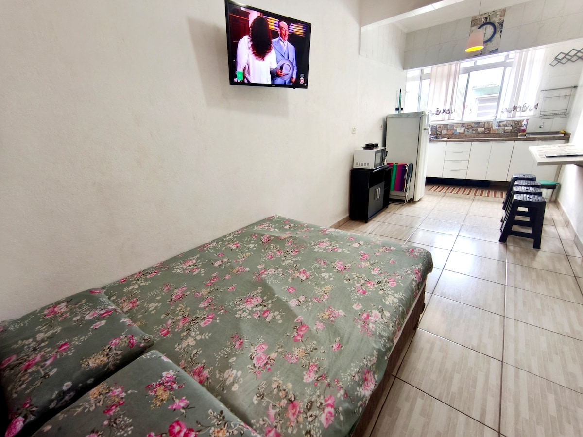 Apt estúdio, 850mts praia, balsa c/churrasqueira