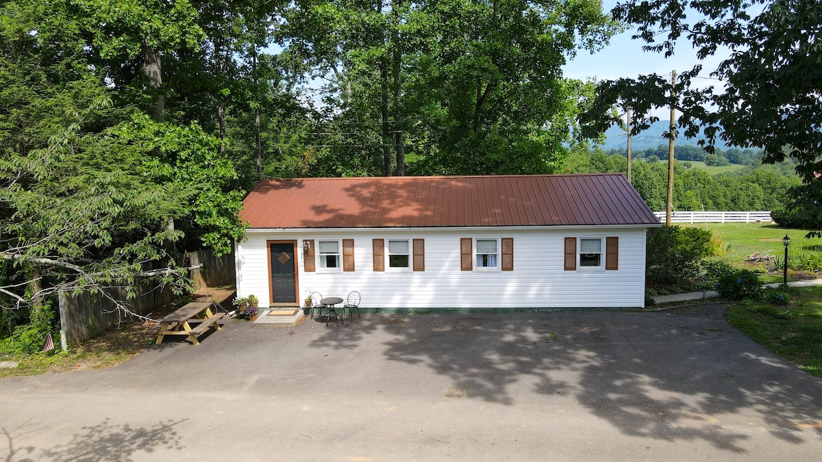 No S'ADMETEN ANIMALS DE COMPANYIA! Si tens un animal de servei, notifica-ho a l'amfitrió amb antelació. Beulah Bison Farm's Golden Cottage es troba en un terreny privat amb un rierol que travessa el pati del davant. Els hostes poden fer senderisme a la granja o relaxar-se i gaudir de les vistes de la muntanya Skull Camp. La Golden Cottage té wifi, internet i molts DVD. La nostra cuina està ben equipada i té un Keurig. El nostre bed and breakfast es troba a menys de 10 minuts de la sortida 93 de l'I-77 i a 20 minuts del centre històric de Mount Airy, Carolina del Nord.