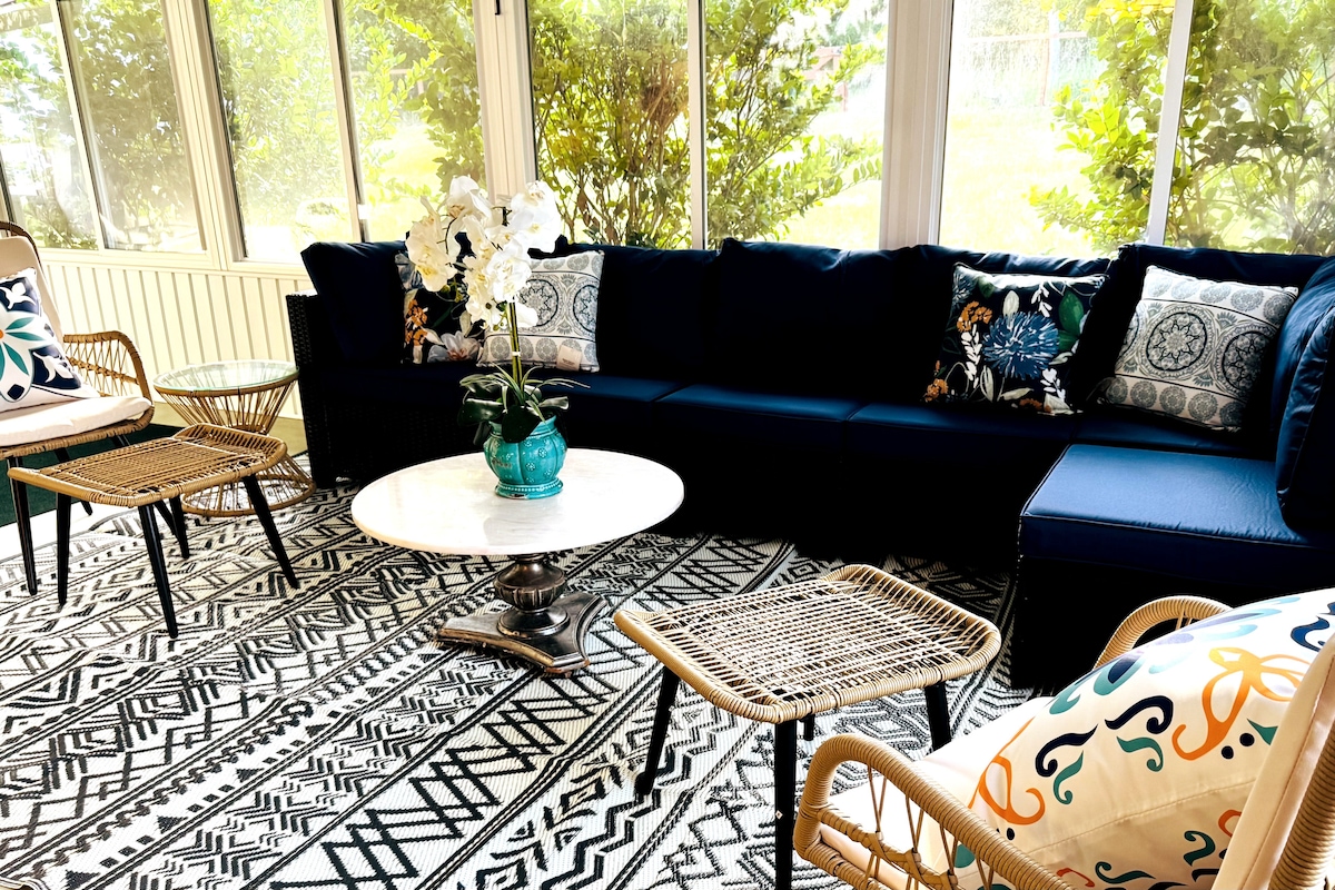 En un barri modest a pocs minuts de tot el que ofereixen Crystal River i Homosassa, trobaràs la suite Boho Chateau amagada darrere de l'allotjament principal de l'amfitrió. És una barreja eclèctica d'equipaments moderns, decoració vintage i obres d'art reciclades. T'oferim tot el que necessites per recarregar les piles amb comoditat, incloent-hi un llit «king size», un Amazon Fire TV de 48", llençols nets i aigua, cafè i aperitius de cortesia.