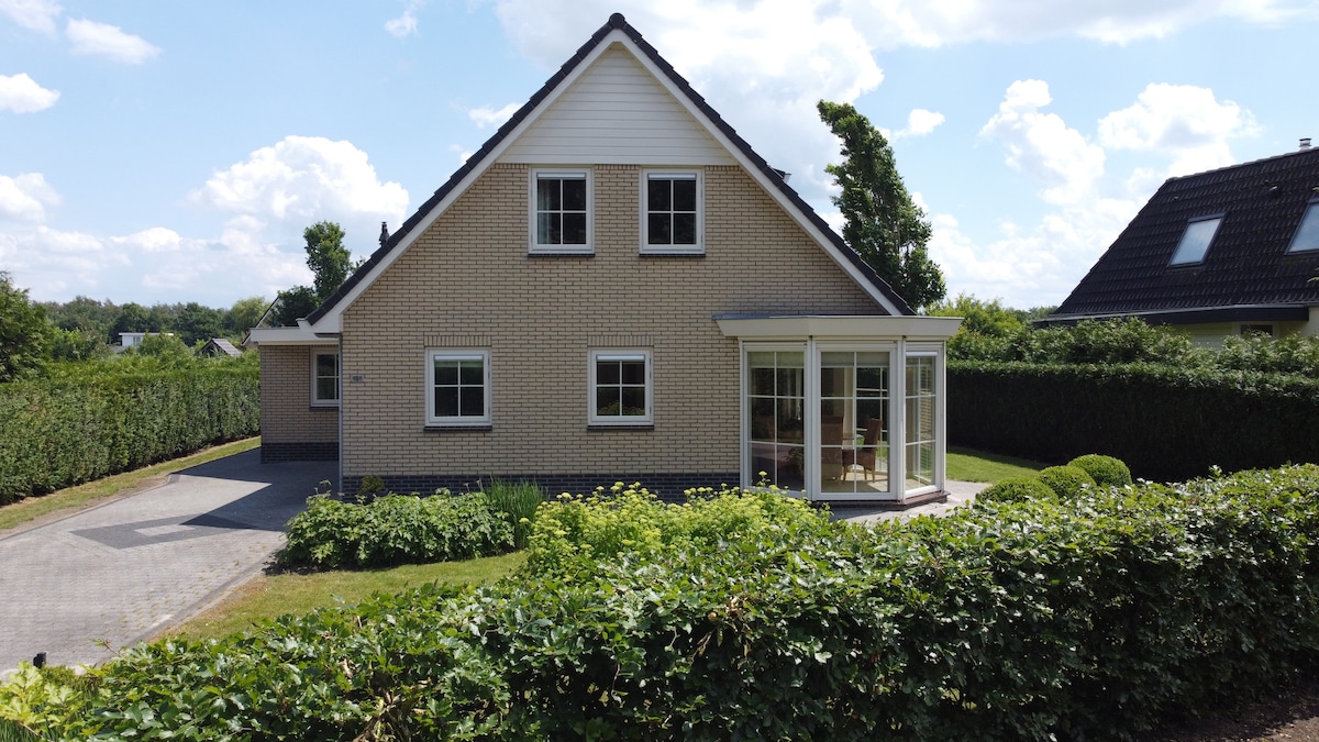 Acollidor bungalou en un bungalou preciós i tranquil. La casa ha estat completament renovada i completament reformada. Wifi gratuït i cobert per a les bicicletes. La casa té tres dormitoris, sala d'estar amb cuina oberta, dues terrasses espaioses i assolellades, situades al mig dels boscos de Veluwe i bressol. El parc disposa d'una piscina exterior (estiu), gimnàs, bugaderia, sauna, arribada les 24 hores i recepció. Hi ha un restaurant acollidor, una cafeteria Grand i també és possible llogar bicicletes.