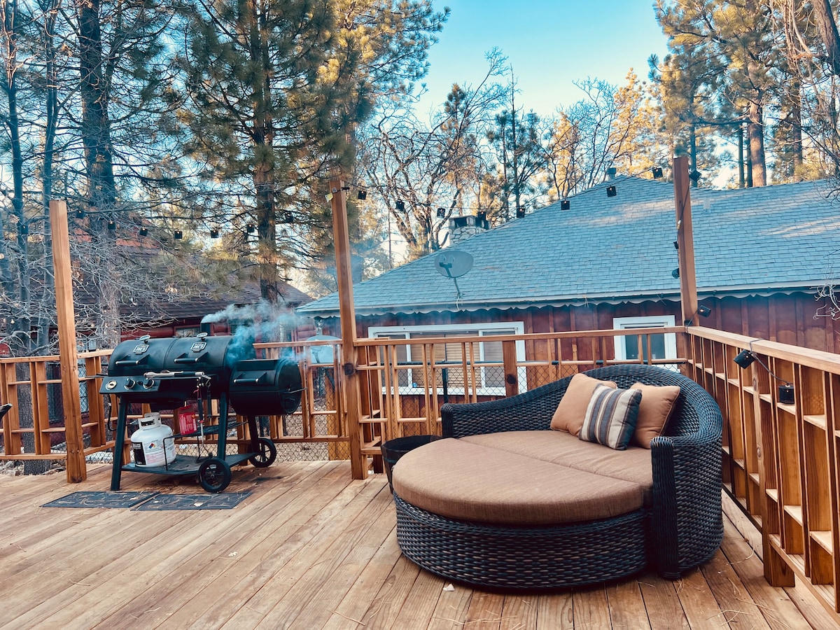 Happy Trails Hideaway es troba al cor de Big Bear, a poques maneres de l'Oktoberfest, a 800 metres del llac i a pocs minuts en cotxe de Snow Summit i Bear Mountain. La nostra casa rústica contemporània de 1550 peus quadrats, construïda el 2007, compta amb sostres abovedats, una llar de foc de roca, una gran cuina de granit amb seients a l'illa i al bar, una planta oberta, moltes finestres, seients a les nostres terrasses davanteres i posteriors, barbacoa, futbolí, foguera i molt més. Aquest allotjament està pensat per a famílies, no per a festes o retirs. Gràcies!