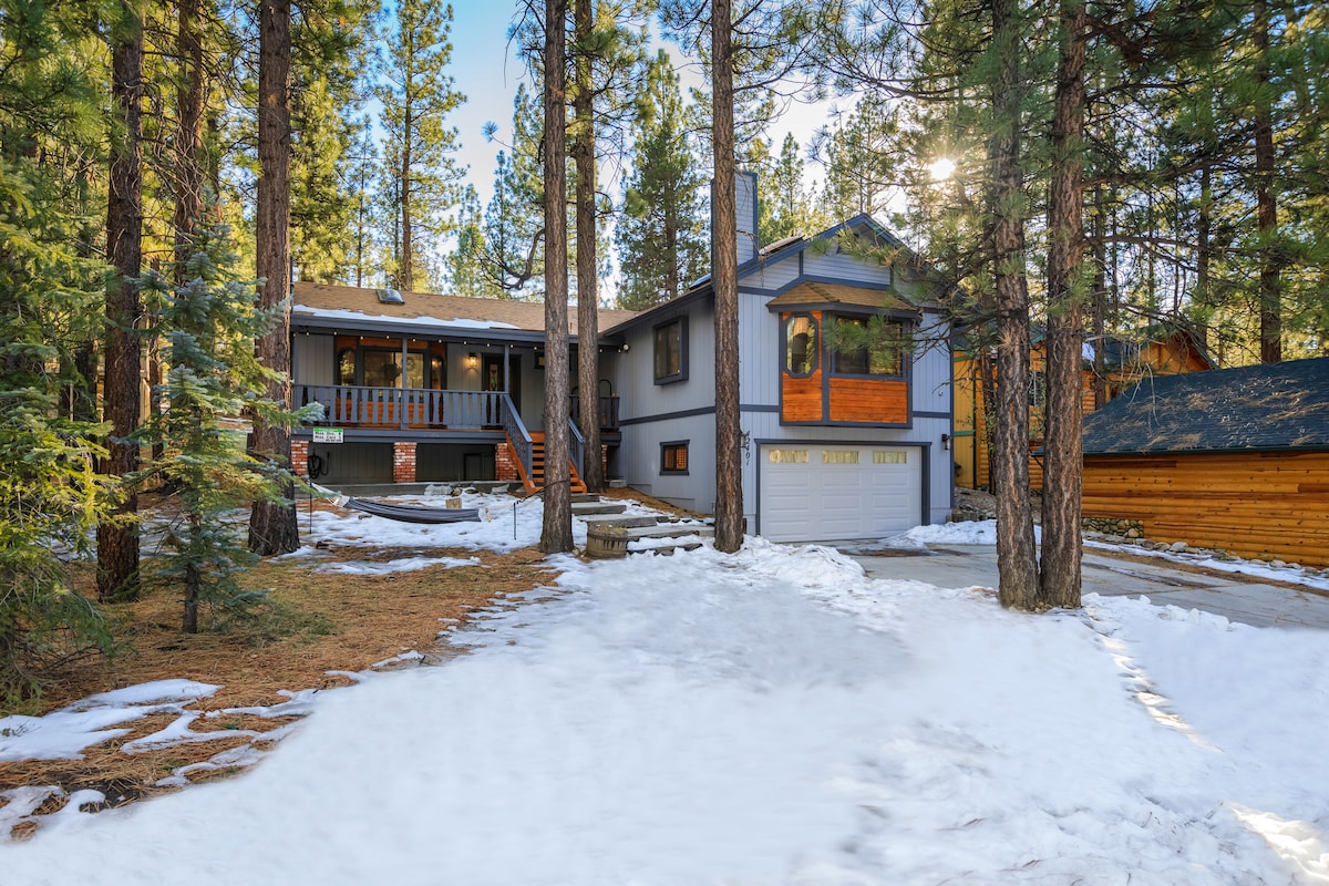 Impressionant casa de muntanya que limita amb Big Bear Lake Eagle Preserve, enclavada entre roques i arbres. El somni d'un artista interior i exterior amb vistes impressionants! A menys d'un quilòmetre de Big Bear Lake, la meva casa és perfectament cèntrica per a tot el que ofereix Big Bear. Després d'un dia a les pistes, al llac o a la ciutat, torna a casa amb un foc càlid, una banyera d'hidromassatge i enormes zones d'entreteniment per dins i per fora. Carregador EV/Tesla inclòs. Gaudeix del putting green, una caminada curta o només les vistes! Requisits de reserva que s'indiquen a continuació.