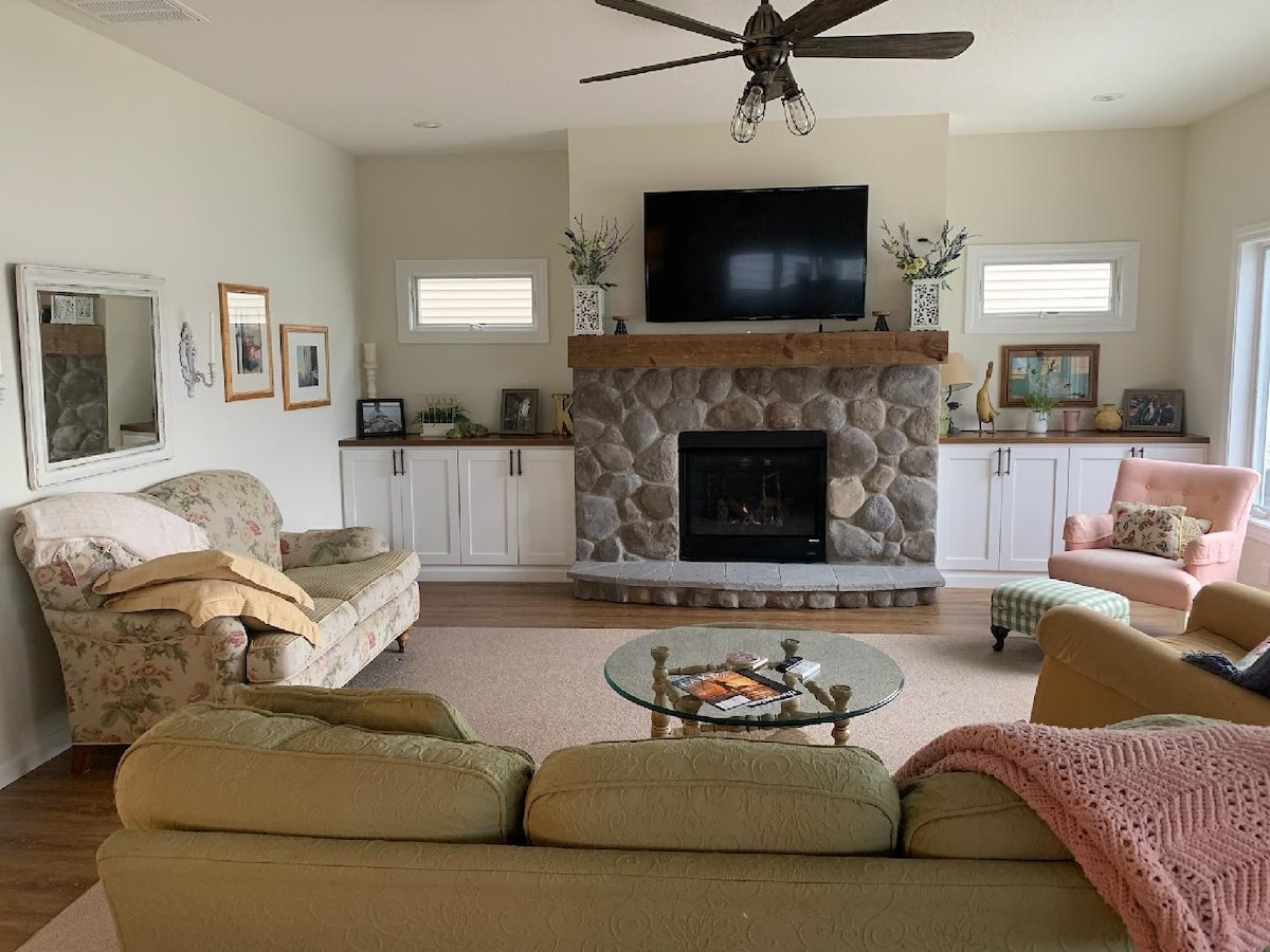 Et donem la benvinguda a la teva escapada tranquil·la! Gaudeix de l'encant del nostre refugi cottagecore, que ofereix unes vistes impressionants del llac. Relaxa't al porxo espaiós amb mosquiteres i gaudeix de l'aire lliure sense insectes molestos. L'acollidor dormitori, el menjador i la sala d'estar disposen d'unes vistes impressionants del llac. Gaudeix del bany amb una banyera d'immersió de luxe i dutxa de vapor. La cuina, equipada amb electrodomèstics nous, fa que cuinar sigui molt fàcil. Des de la sala d'estar, entra a la terrassa i gaudeix de l'entorn serè.