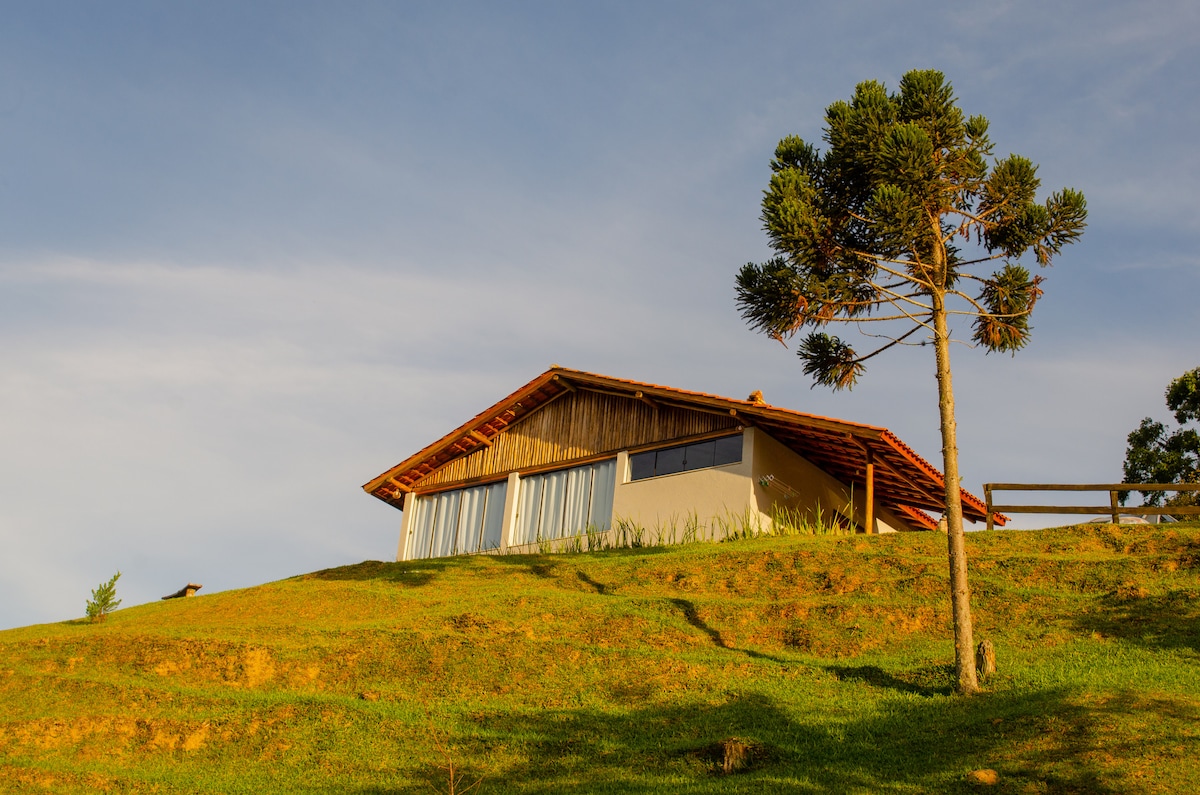 Casa rústica i moderna, planta baixa, sense escales i en un lloc llunyà, lluny de tota preocupació. Vistes de l'alba i la posta de sol des del mateix lloc. 3 dormitoris 3 llits Xarxes de descans Taula de billar amb vistes a les muntanyes Televisor amb Netflix Sala d'estar integrada amb cuina Foc de terra amb graella Terrassa exterior Guitarra i caixa de ressonància Cervejeira Balanço no pati Camins Aparcament a l'aire lliure Tot el que necessites per oblidar els teus problemes és aquí. Descobreix el teu nou refugi preferit d'Antonio Carlos!
