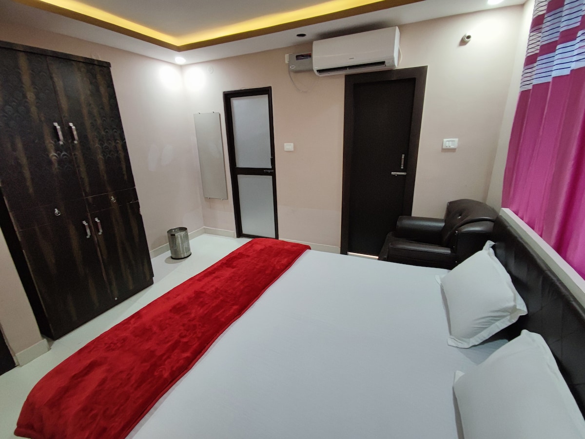 Experience premium hospitality in our elegantly designed Suite Room at Shree Ram Resort. This spacious suite is perfect for couples or business travelers seeking comfort and style in Bihar Sharif. Featuring a plush king-size bed, modern interiors, attached washroom and balcony. As our guest, you enjoy full access to our sparkling swimming pool, a fully-equipped gym, and a vibrant indoor games zone. Whether you're here to unwind or stay active, our resort offers the perfect balance.