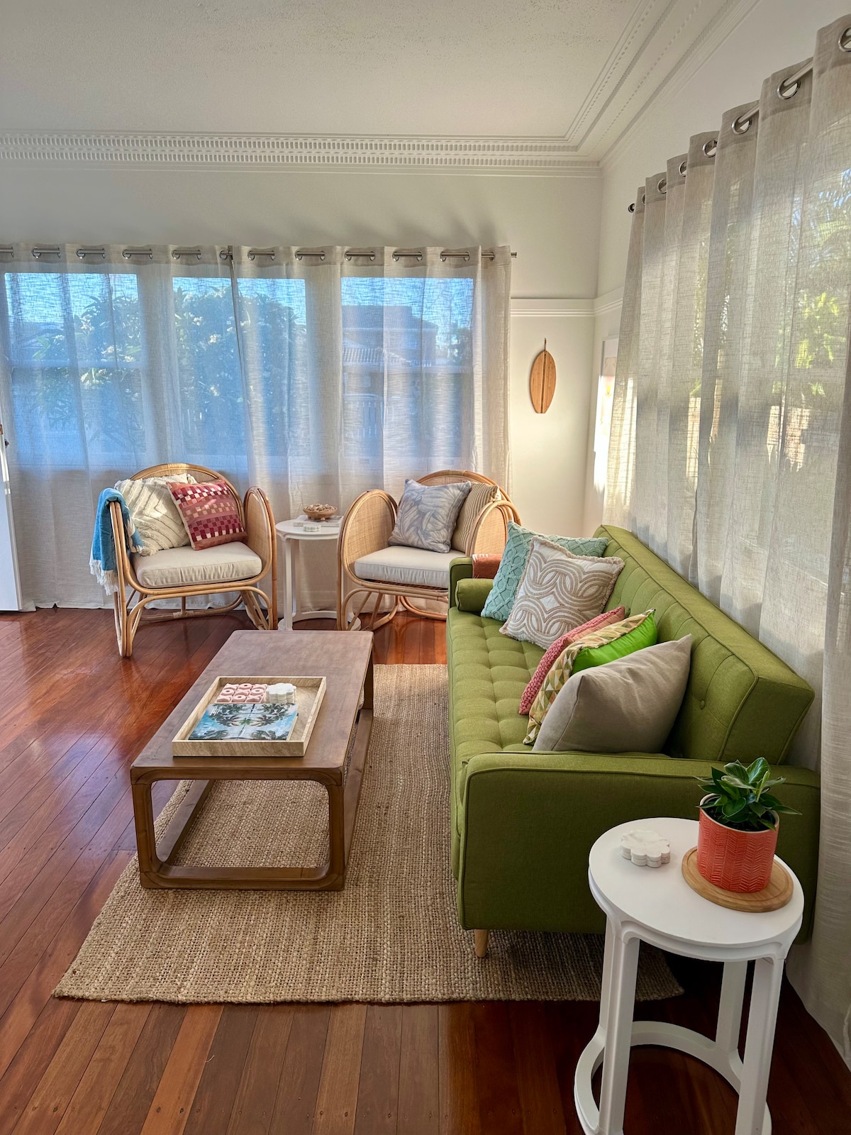 Love the sound of the ocean in the morning? Want an amazing choice of overlooking the Ocean or the River on the full sized deck with your morning coffee or afternoon cocktail? Then we have the holiday get away for you. Once you arrive you can leave the car parked as you can walk to pretty much everything: •Cafes, Restaurants and amenities •Beach and river Original cottage with timber floors, living area opening onto the deck with amazing views from the master bedroom and living areas.
