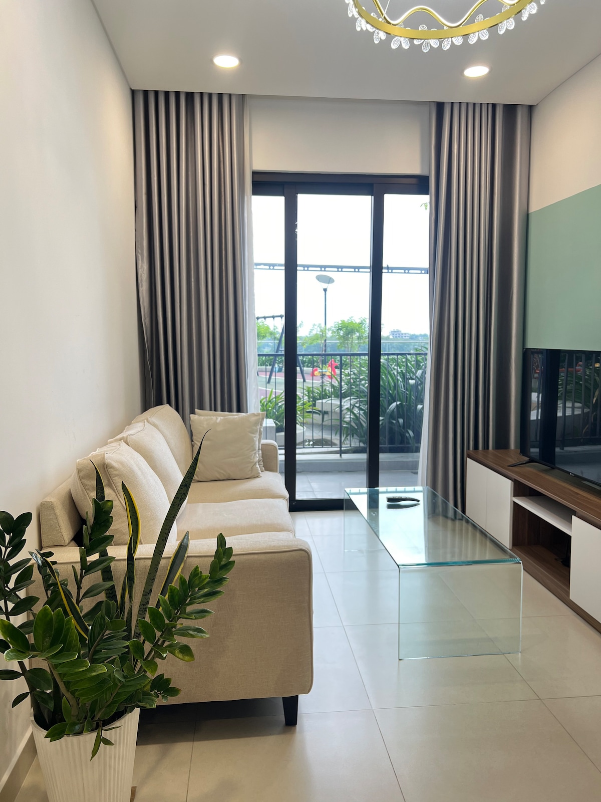 Pis de 3 dormitoris Compass One – Centre de Thu Dau Mot Pis de 3 habitacions a Compass One, planta alta, vistes obertes a la ciutat, apte per a famílies, grups d'amics o professionals. Espai lluminós, net i tranquil, sala d'estar espaiosa amb 2 vistes. Cuina totalment equipada amb illa de marbre, placa d'inducció, nevera gran, adequada per a estades llargues. L'apartament té 3 dormitoris, 2 banys, wifi gratuït Ubicació cèntrica: família al 1r pis, a uns 2 km de la Torre Becamex, envoltada de molts restaurants, a 10 km del camp de golf