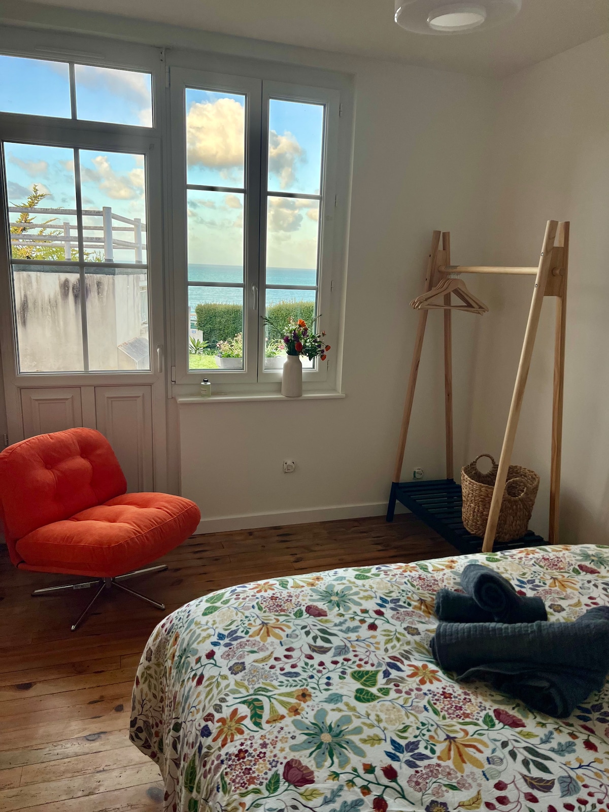 Les teves vacances a Bretanya amb vistes al mar! Al cor del balneari de Binic, a primera línia de mar, un pis recentment reformat que té impressionants vistes al mar. 2 grans finestrals de vidre davant del mar. A un pas de la platja, el port i les botigues (fleques, restaurants...). Base ideal per a moltes passejades per la costa (GR34) A 30 metres de la platja! Tindràs una plaça d'aparcament privada