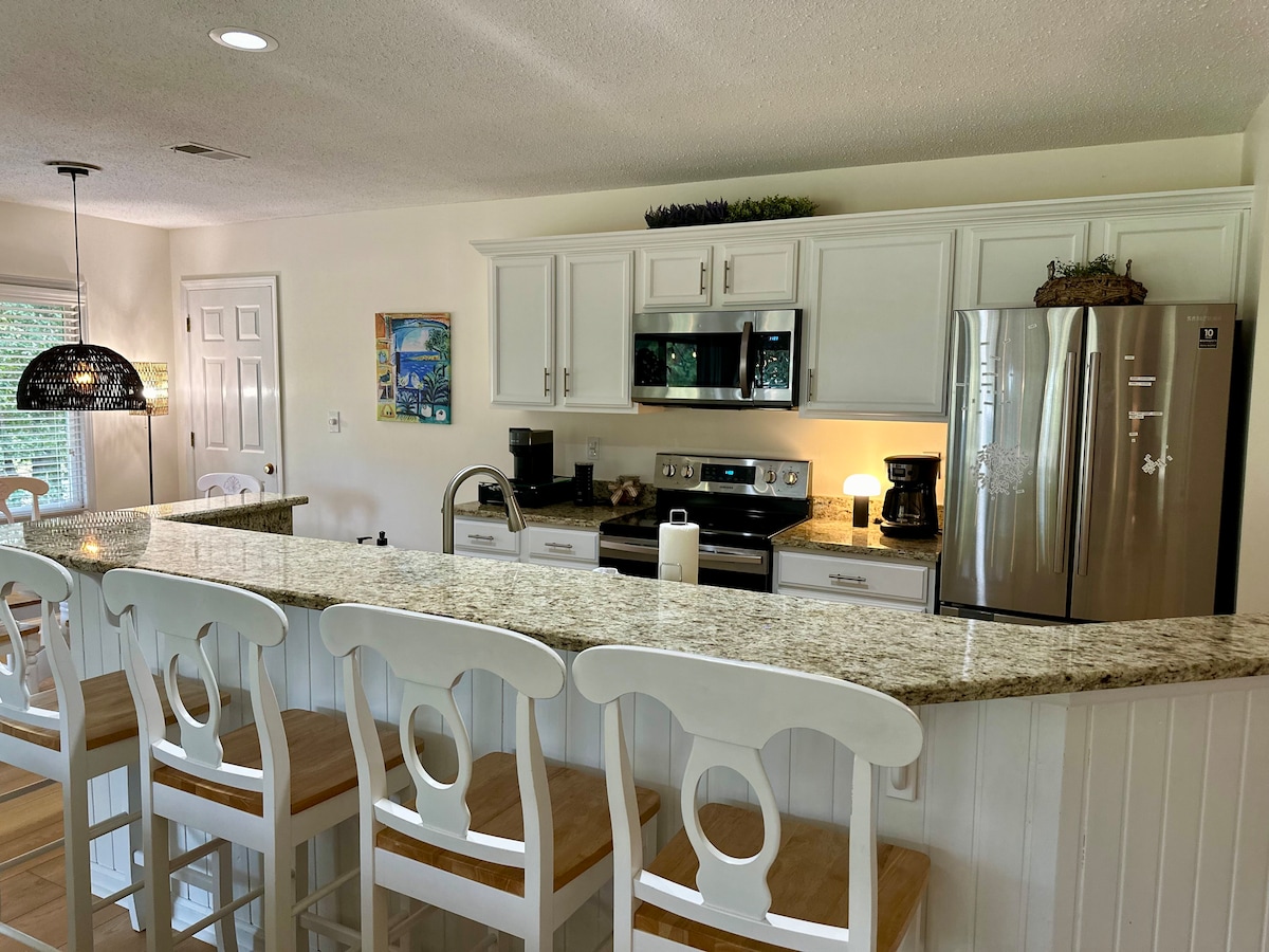 We've created a cozy, beach-themed getaway nestled in an adorable neighborhood, just a short drive to the ocean. We redid the entire home with all new appliances, flooring, and amenities. It's decorated to help each and every guest feel at home at the beach. The home is within 5 minutes of Sunset Beach. 10 minutes to North Myrtle, Cherry Grove. Both Wilmington and Myrtle Beach are within 40 minutes. There are plenty of restaurants, grocery stores, and bars very near the home as well.