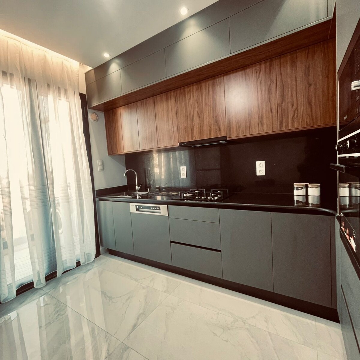 Un apartament moblat modern; en una zona tranquil·la, però molt a prop del carrer concorregut de Sidi Yahia. - terra de parquet/calefacció central/TV intel·ligent/aire condicionat/wifi gratuït/vestidor/balcó per assecar roba i rentadora/planxa/microones/bullidor elèctric/estris de cuina/tovalloles/productes de neteja - Agent disponible les 24 hores per ajudar-te durant l'estada a Algèria.