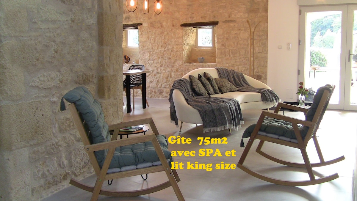 Dedicat especialment als amants! Vine i descobreix o descobreix el Périgord Noir al poble més exòtic i sorprenent de la vall de Dordogne, la platja i els llocs més famosos de la regió al teu abast. Situat en un edifici històric, al cor del poble i a la vora del mar, aquest loft únic t'ofereix un llit rodó amb un diàmetre de 2,30 m, un spa privat i una vista increïble de la Dordogne i la seva vall...