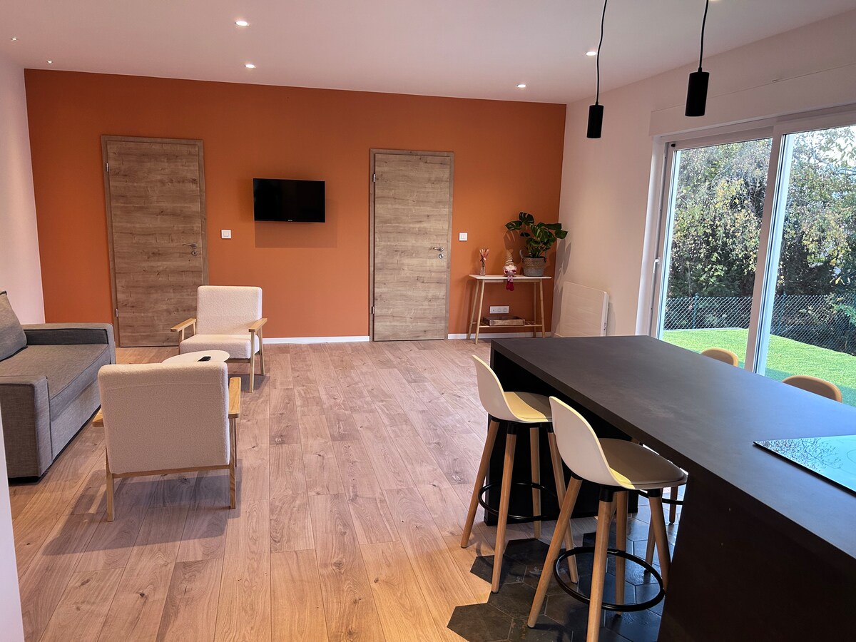 Estudi de 40m2. Prop de la ruta del vi de Colmar i Alsacia. L'allotjament inclou els elements imprescindibles perquè et sentis com a casa : - Saló amb TV, WiFi - Llit doble amb llenya - Dutxa amb tovalloles - Cuina equipada amb microones, plaça, nevera, cafetera, hervidor, te, cafè, sal i pebre. - Terrassa privada L'entrada a l'allotjament és autònoma, separada de la nostra entrada principal, gràcies a una caixa de codi.