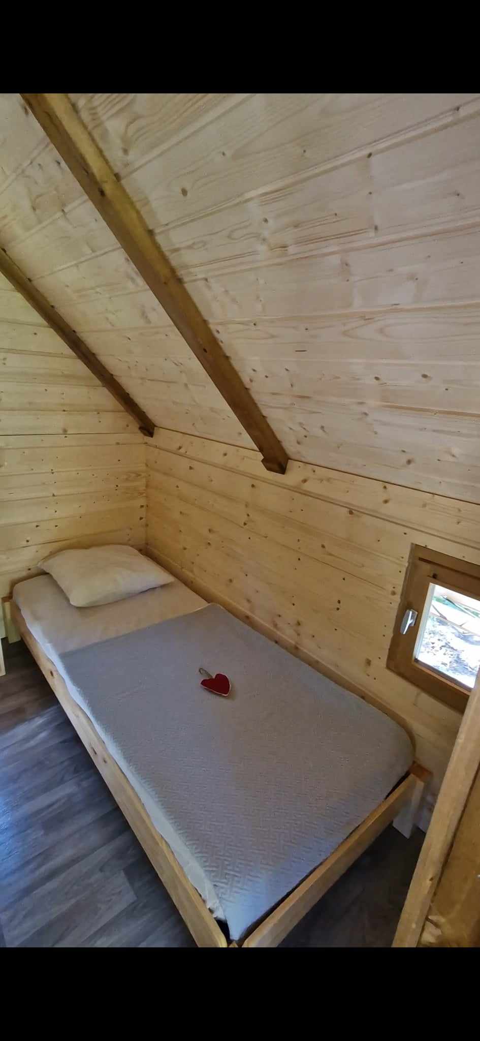 L'Araddone és una cabana per a 1 a 3 persones que et permetrà gaudir del càmping sense els inconvenients del transport, el muntatge o el desmuntatge. 12 m² de superfície útil per a la teva comoditat: habitació de 7 m² amb un llit real i zona de menjador de 5 m², totalment equipada. Emmascarat al costat del riu, adormir-te a la llum de l'aigua i gaudir de l'ombra del bosc a l'estiu!
