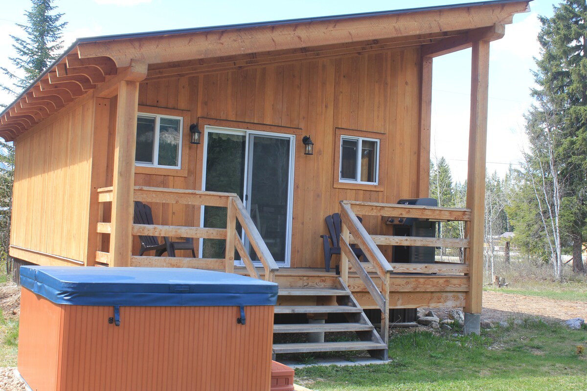 Et donem la benvinguda a The Kabin, un acollidor allotjament amb unes vistes panoràmiques de muntanya! Situat a la pintoresca vall de Blaeberry, a pocs minuts de Golden BC i del complex de muntanya Kicking Horse, The Kabin és el lloc ideal per a parelles, famílies petites o amics que busquen relaxar-se i viure aventures. Construïda amb cura per un artesà local, aquesta bonica caseta de fusta combina l'encant rústic amb les comoditats modernes, com ara la banyera d'hidromassatge privada per gaudir d'un bany sota les estrelles i d'unes vistes impressionants a la muntanya.