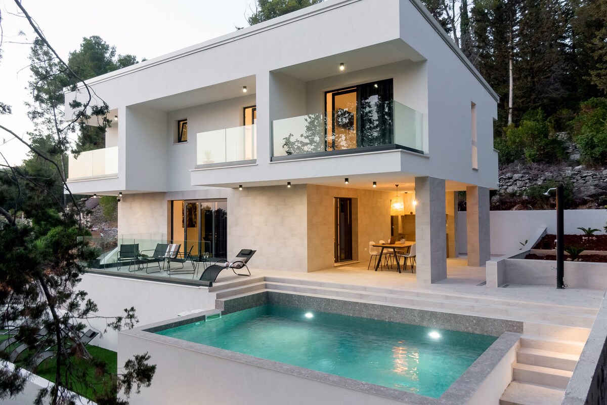 Aquesta casa de tres dormitoris amb piscina té una vista espectacular del mar, la posta de sol i la sortida del sol. És un lloc perfecte per allotjar-te a l'allotjament, ja que aproximadament 1500 escales condueixen a la casa. Es troba a 70 metres del mar cristal·lí. La casa té 100 metres quadrats (més la logia de 30 metres quadrats). Hi ha una zona de relax addicional de 25 m2 amb dutxa exterior on es pot barbacoa i una zona de piscina amb una terrassa de 100 m2 on es pot prendre el sol. Es troba a 35 km de Korcula i la botiga més propera es troba a 10' a peu.