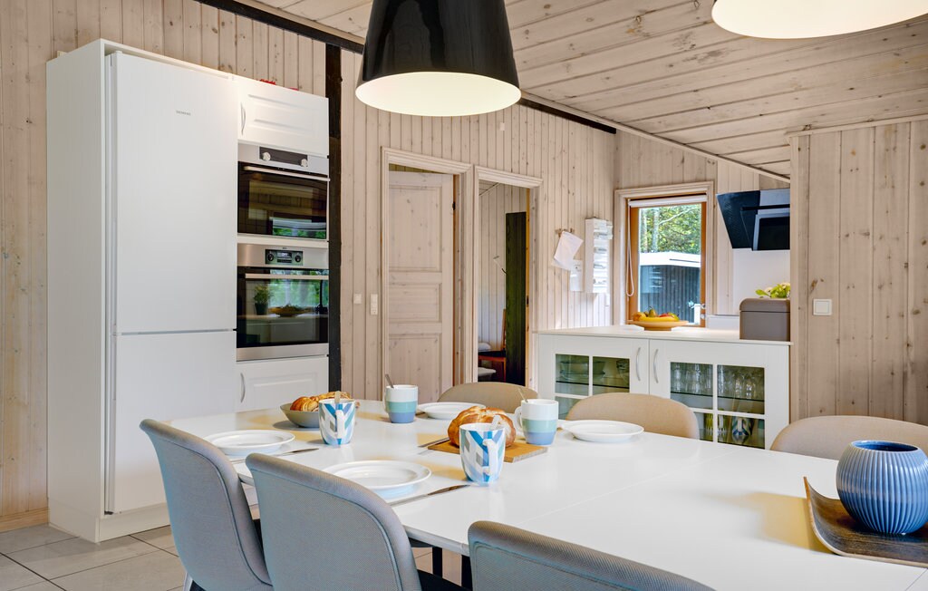 Visita aquesta idíl·lica casa d'estiueig de fusta, totalment renovada i amb un ambient meravellós. Situada en un gran terreny boscós a Skuldbøl. Un lloc agradable i tranquil, amb un entorn natural i una rica fauna. Nova gran terrassa amb coberta enmig del bosc. A 8 minuts a peu de l'aire fresc del fiord de Ringkøbing. La casa amb encant ofereix una natura preciosa a l'interior i té una decoració lluminosa i agradable, que convida a unes vacances còmodes i relaxants. Aquí hi ha pau i ambient a les boniques terrasses.