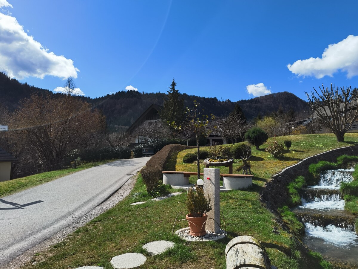 Relaxa't en aquest apartament tranquil i elegant, envoltat d'un ampli jardí verd que té Bled Lake, a només 300 metres de distància. Recentment reformat en un disseny alpí modern i acollidor, totalment equipat amb tot el que necessites. Inclou dos dormitoris dobles, situats a la planta baixa amb accés directe al jardí, on pots relaxar-te en cadires de jardí o una hamaca o gaudir de l'equip de pícnic per gaudir d'un àpat a l'aire lliure. Podràs fer servir l'aparcament davant de la casa i disposes d'un carregador de cotxes elèctrics.