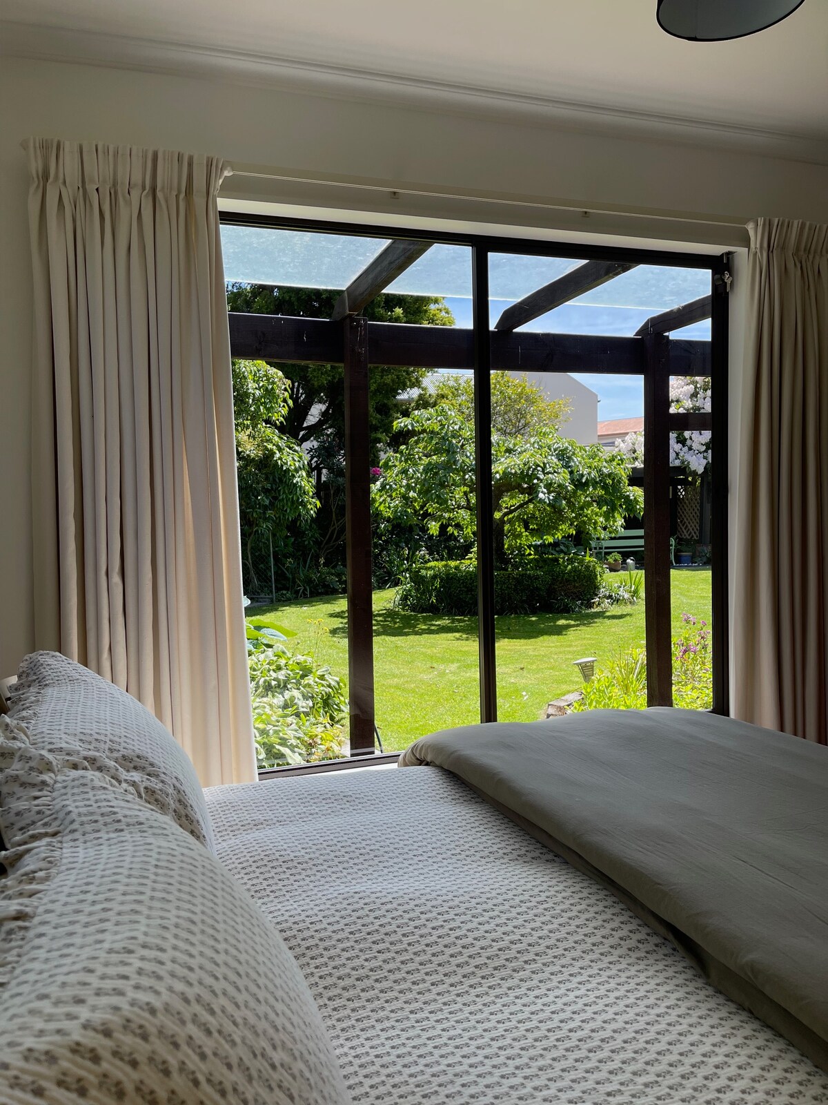 Habitació petita però còmoda, privada i amb aire condicionat amb bany, situada entre magnífics arbres i jardí a la zona residencial superior. Té la seva pròpia entrada amb pany i està a només 15 minuts a peu o a 5 minuts en cotxe del centre de la ciutat, a 10 minuts en cotxe dels cellers i del Centre d'Aviació Omaka. Microones, paella elèctrica, torradora, nevera petita, coberts, vaixella i objectes de vidre inclosos. Nota: no hi ha cuina ni forn. La unitat també té un televisor intel·ligent amb Netflix i Freeview.