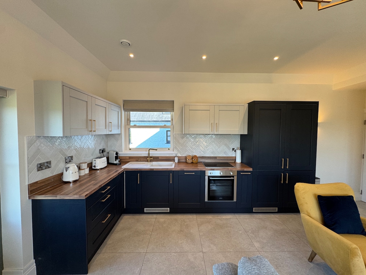Els nostres allotjaments de luxe esperen a aquells que busquen una escapada romàntica completament única. Et trobaràs en un entorn rural, però no t'enganyis. La ciutat de Killarney està a només 1,5 km de distància. El teu allotjament disposa d'un ampli dormitori amb llit extragrande (europeu) i mobles a mida. Hi ha un bany complet adequat amb dutxa elèctrica. La mini cuina té de tot, des d'una vitroceràmica fins a una màquina de Nespresso. El pati privat amb calefacció i barbacoa és perfecte per refrescar-se al vespre amb el so del riu.