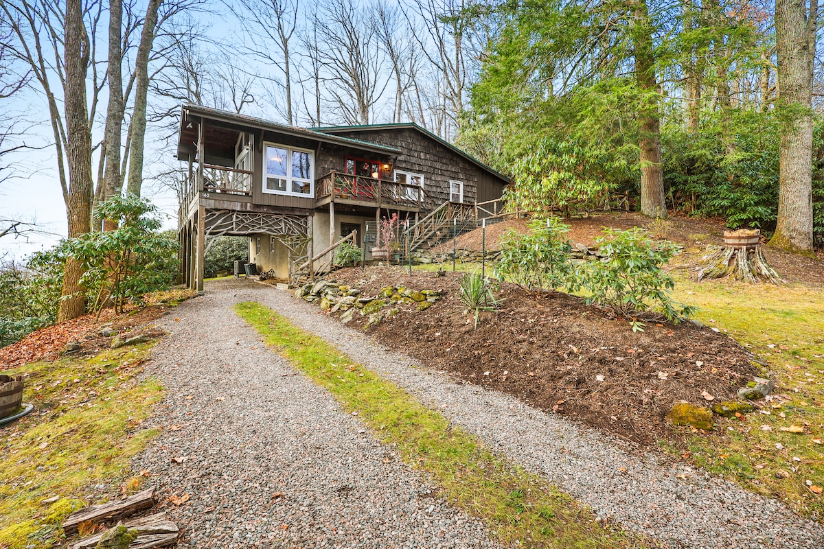 Vine a allotjar-te al nostre xalet de 5 ESTRELLES! Un favorit per a escapades especials i romàntiques. La nostra romàntica estructura triangular està a 10 minuts del centre de Boone i a poca distància en cotxe de Banner Elk. Amb unes vistes espectaculars de Grandfather Mountain, aquesta panoràmica ha estat considerada una de les millors de Boone! Aquesta moderna caseta té una dutxa envoltant, una llar de foc, una banyera d'hidromassatge per a 2 persones, vidrieres personalitzades i molts tocs personals per fer-la sentir com a casa. Vine a allotjar-te a la nostra acollidora llar, que és a prop de tot, però sembla que estigui a quilòmetres de distància!
