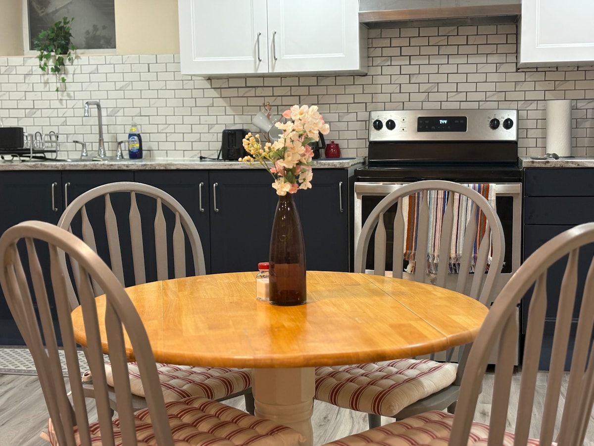 El nostre modern apartament totalment renovat té capacitat per a 4 persones amb 1 bany complet i amb cuina completa. Aquest apartament ofereix tota la sensació de luxe d'un hotel boutique, amb els serveis del teu allotjament. Wifi gratuïta, TV per cable, llit «king size», sofà llit complet, dutxa de peu i un munt d'aparcament gratuït. Estem situats a menys de 5 minuts en cotxe de The Blue Mountains Village, l'escapada prèmium de quatre estacions d'Ontario, la nostra ubicació farà que la teva estada sigui una mica més especial.