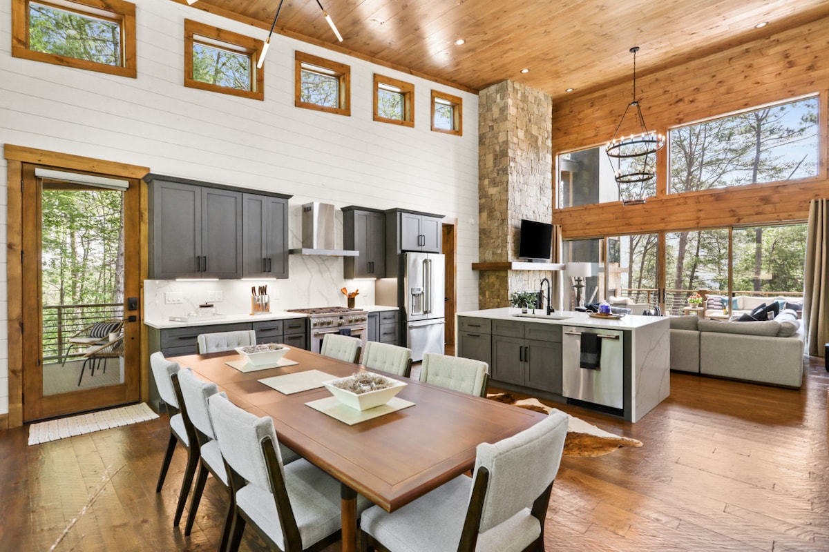 Escapa't al luxe en aquesta impressionant cabina de muntanya de Blue Ridge, a només 5 minuts de DT. Gaudeix de vistes panoràmiques, 4 llars de foc de pedra, cobertes àmplies, una banyera d'hidromassatge i un nou espai exterior amb un espai per fer-hi foc, un camp de minigolf i una hamaca. Les característiques inclouen una cuina ben equipada, un bar, un carregador de vehicles elèctrics, llençols nets i un kit d'inici ben pensat amb elements bàsics per fer que la teva estada sigui fàcil i sense preocupacions. Tranquil però còmode, és el refugi perfecte per relaxar-se, entretenir-se i gaudir de la natura.