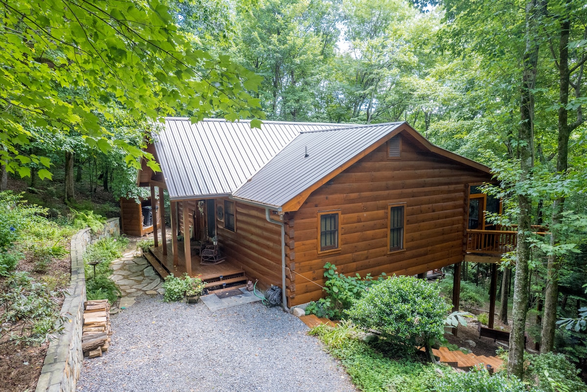 Cabana rústica a Smoky Mountain amb banyera d'hidromassatge privada • A prop del bosc Cherokee Aquesta caseta construïda a mà, situada al bosc de Tennessee Oriental, té l'encant autèntic de les Smoky Mountains. Fusta nativa càlida per tot arreu, un llit de mida completa amb llençols acollidors i una cuina completa per preparar àpats fàcils. Gaudeix de la banyera d'hidromassatge privada, la foguera amb mirador, les balancins al porxo i la total privacitat: sense veïns ni distraccions. Perfecte per a parelles o escapades en solitari amb ganes de pau i tranquil·litat. Senzill. Autèntic.
