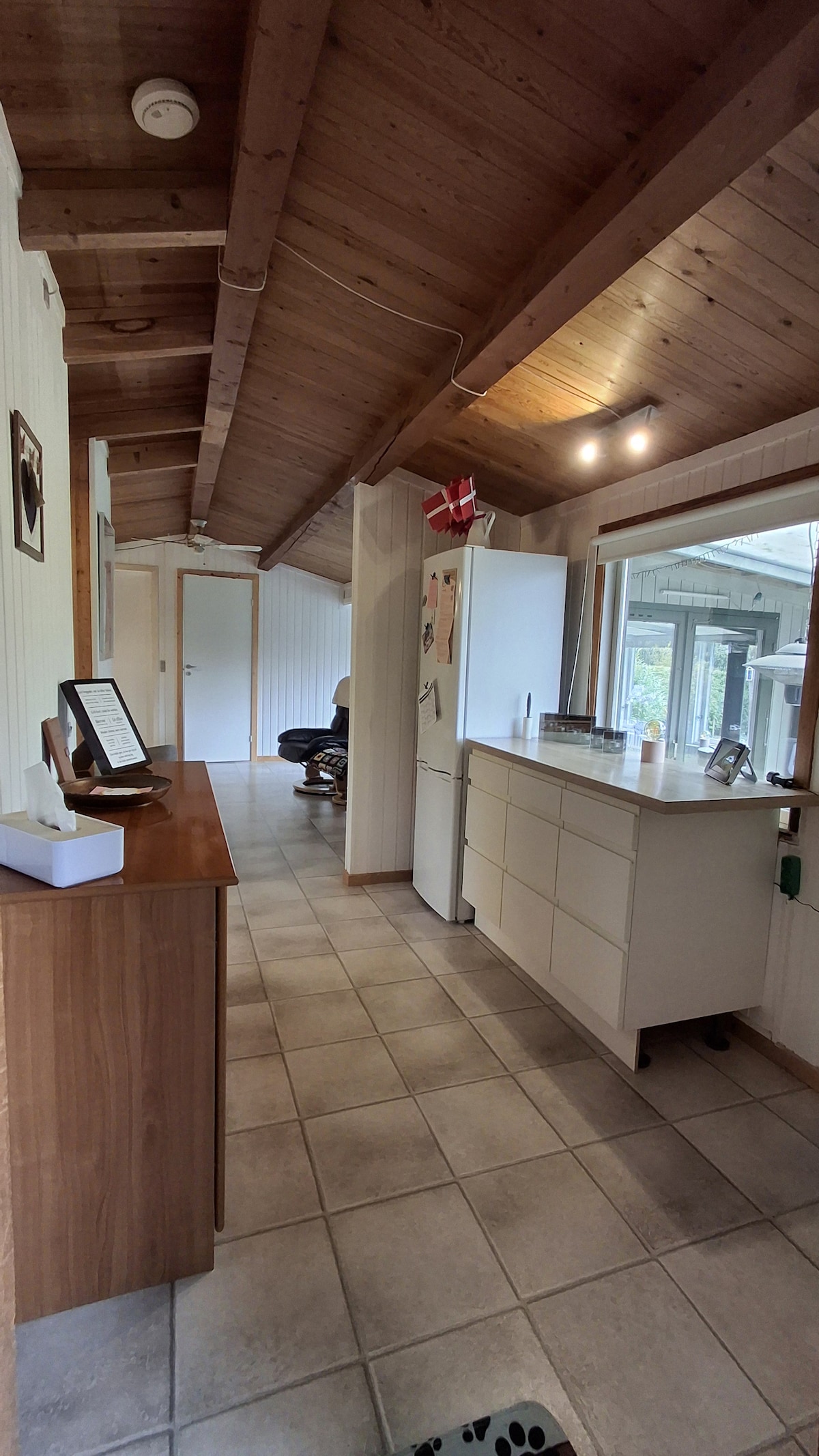 A cosy, family-friendly summerhouse one hour from Copenhagen, located on the small island of Bogø right next to Møn The house has a relaxed, homely atmosphere with a mix of 50’s retro and Scandinavian modern style – not a five-star hotel, but “hyggeligt”. The quiet garden offers green lawns, a private courtyard for morning coffee, and a trampoline It’s easy to explore Møn with its dramatic white cliffs at Møns Klint, beautiful beaches, and some of Denmark’s best stargazing in the Dark Sky Park