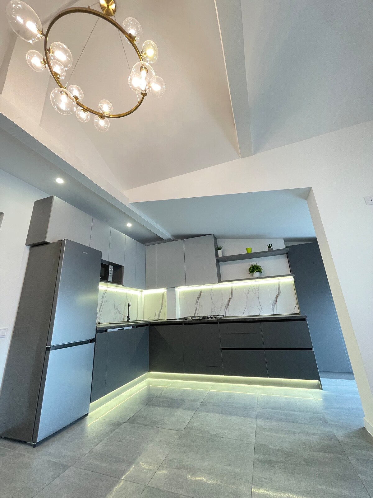 Aquest espai únic té el seu propi estil. Disseny modern d'espai i mobles, sostres alts , decoració elegant, bona ubicació a la planta superior, en una zona tranquil·la t'ajudarà a gaudir de la teva estada.