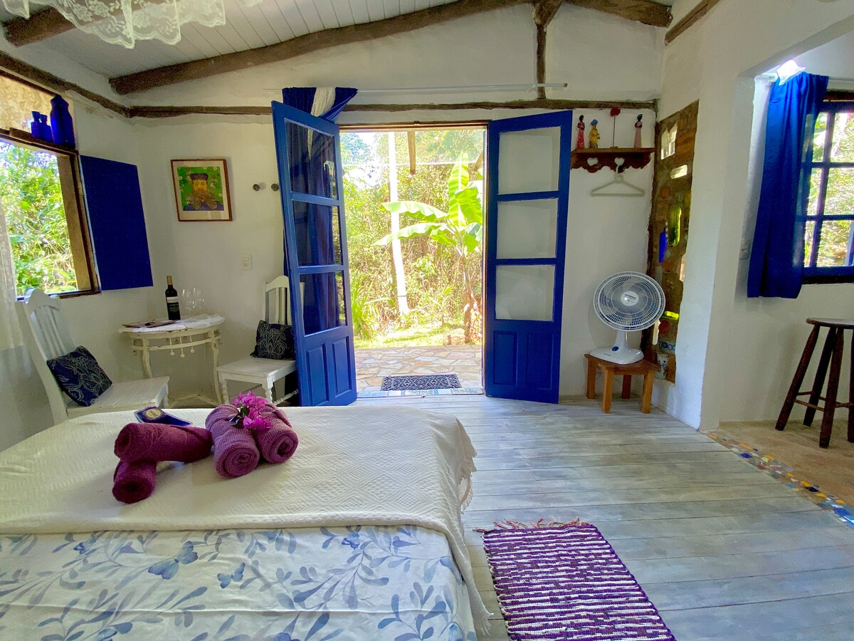 Casa suite molt ben situada, amb entrada independent, amb bany privat i balcó, en una ubicació excel·lent a prop de les 3 millors platges del sud de la lhabela: P. Grande - P. Julião - P.Feiticeira , accessible a peu. A prop de fleca, mercats i restaurants de platja. Suite , balcó, hamaca, mosquitera , ventilador, minibar, escriptori ,televisor, wifi i aire condicionat. Suite King: per a 1 parella o 2 individuals Tinc una suite més per a un màxim de 2 persones.: Witch Suites-Ilhabela-Suite Queen