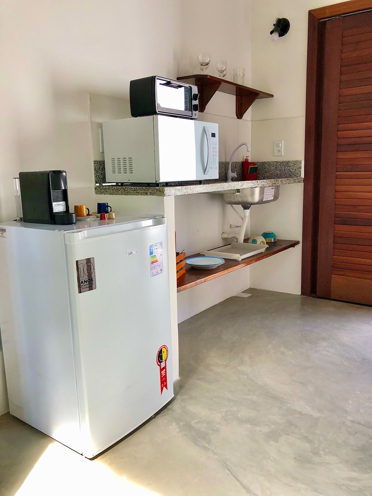 El xalet té cuina, bany i mesanina amb matalàs doble i ventilador. El xalet és de fusta 100% reciclada. Boipeba perquè és un lloc amb un bosc proper, tenim la conseqüència d'haver de fer front a molts mosquits. La casa rural té una mosquitera i també un ventilador. Però com que és un xalet amb buits, es recomana utilitzar repel·lent quan estiguis a la cuina i també a l'hamaca. LA DUTXA NO ÉS ELÈCTRICA. Deixa't i estar obert a noves experiències. ✨
